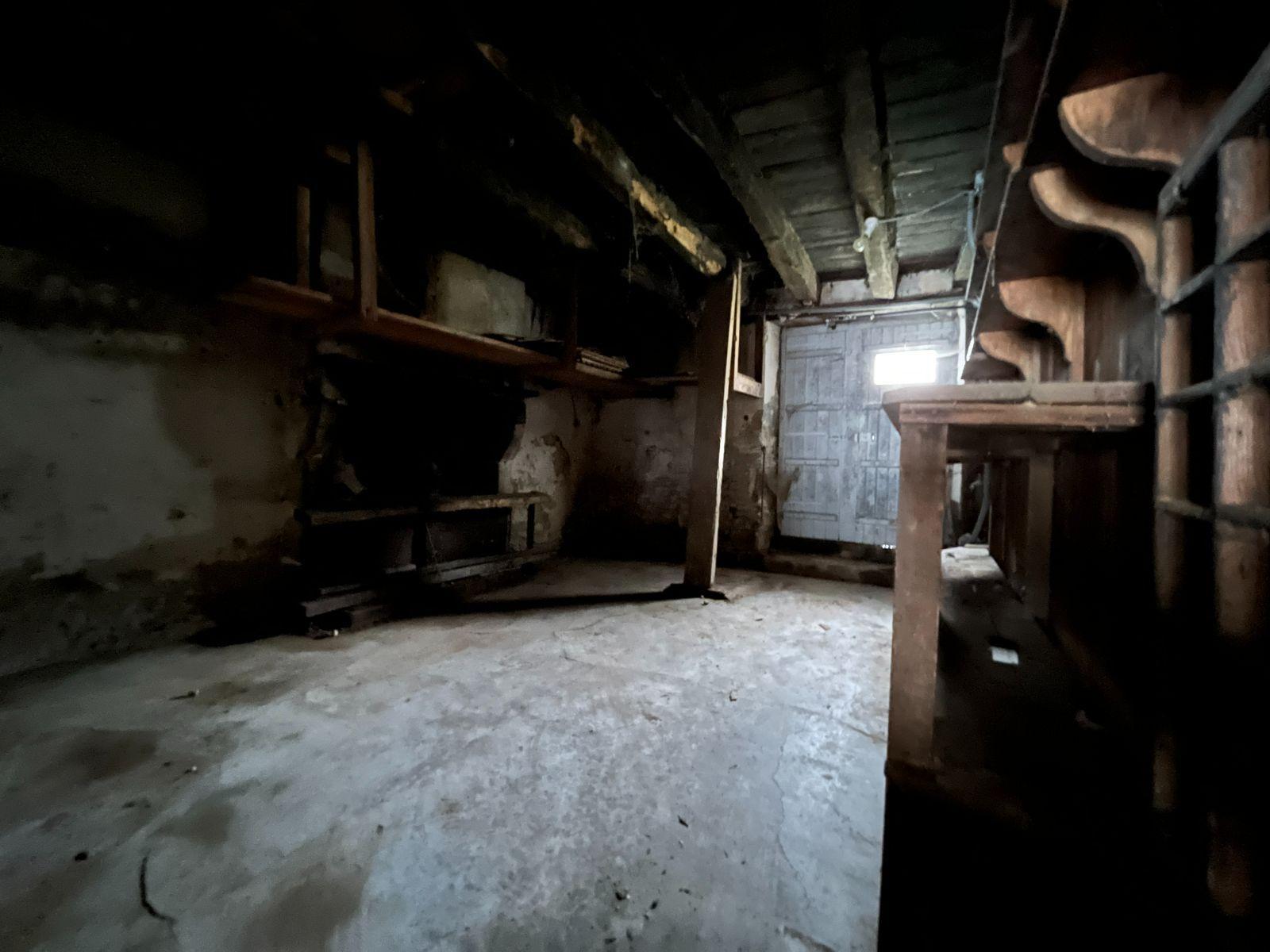 Maison de ville mitoyenne, composée au rez-de-chaussée d'un couloir distribuant ; un atelier, une cave, une remise avec cheminée et une cave à vin avec sortie sur la cour.