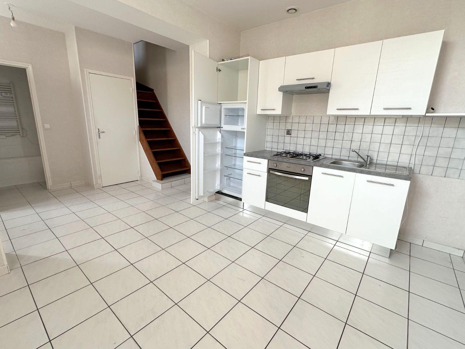 A proximité des commerces, en plein coeur de ville, appartement en duplex de type F2 en bon état général composé d'une pièce de vie avec cuisine aménagée ouverte, une salle d'eau, et un WC indépendant. A l'étage, une belle chambre mansardée. En annexe, une place de parking privative.