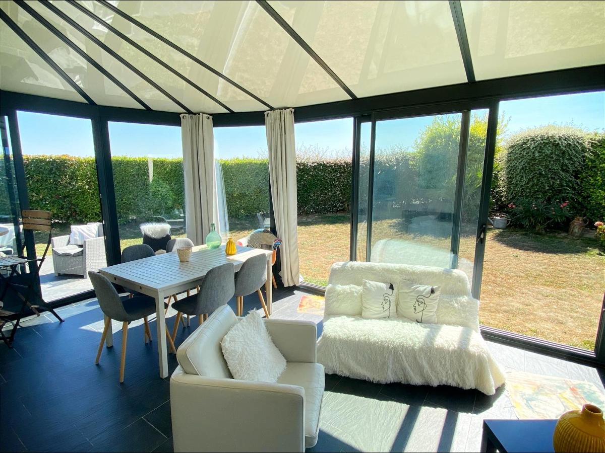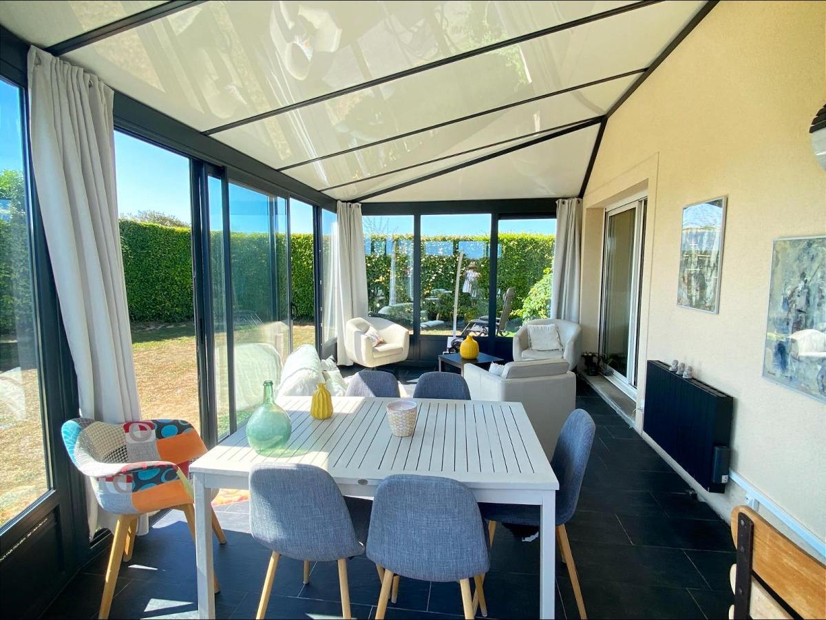 LUC SUR MER - 900 M DE LA PLAGE - DANS UN SECTEUR CALME ET VERDOYANT L'office notarial vous propose une maison de style contemporain en excellent état comprenant : - au rez-de chaussée : une entrée avec placard, une cuisine aménagée et équipée ouverte sur séjour salon avec une cheminée de forme contemporaine, dans le prolongement une véranda bien intégrée, une chambre avec salle d'eau. - au premier étage : palier, trois chambres, salle d'eau et WC. L'ensemble sur un terrain de 459 m². Fenêtres PVC - Chauffage électrique - Garage accolé avec grenier pour stockage. Les informations sur les risques auxquels ce bien est exposé sont disponibles sur le site Géorisques : www. georisques. gouv. fr Consultez nos tarifs : https://www.douvres-notaires.com/tarif/