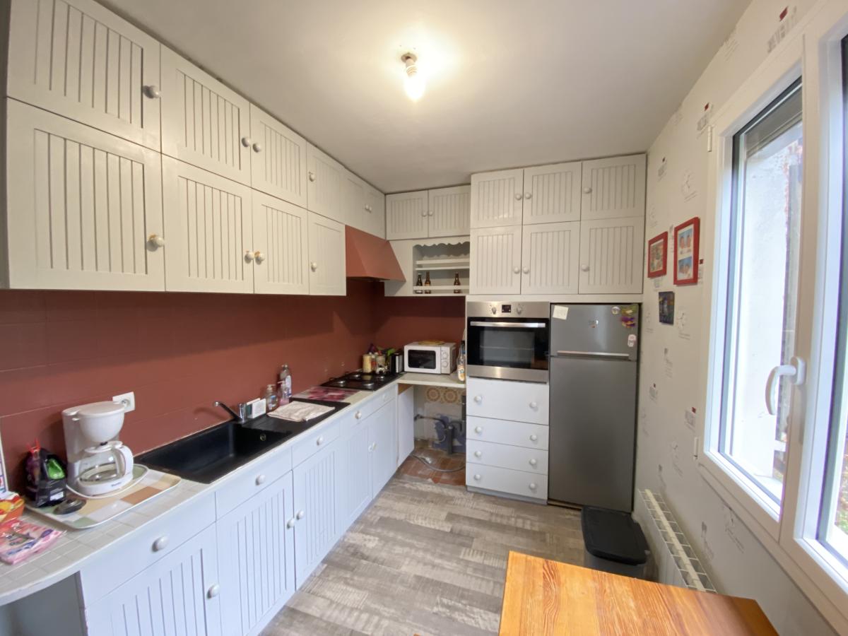 d'une vaste entrée avec placards, séjour salon avec cheminée, véranda, cuisine aménagée, trois chambres, une chambre avec salle de bains, et une salle d'eau.