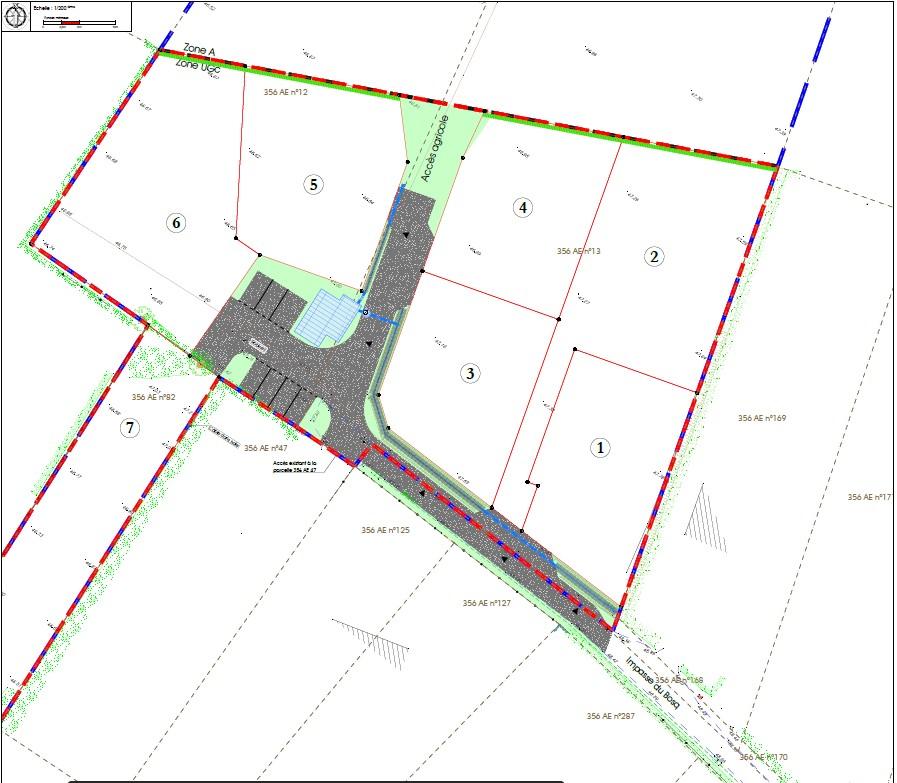 - Lot 5 : 560 m² environ - Borné - viabilise (eau-telecom-edf) prix net : 107 800 €
