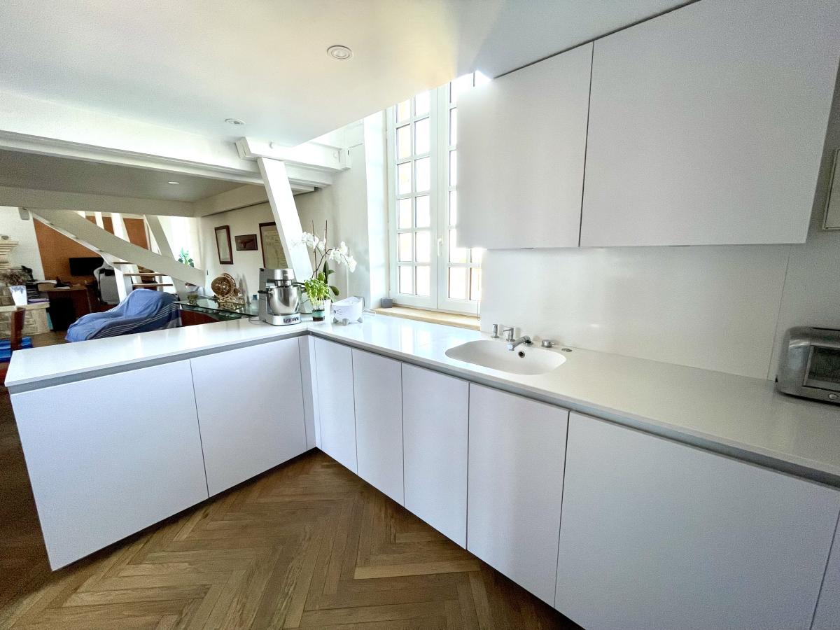 Dans une petite copropriété historique de charme située au coeur de COURSEULLES, appartement duplex en très bon état général comprenant :