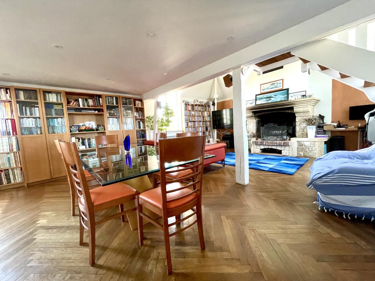 - cuisine A/E récente haut de gamme, salon/salle à manger avec vaste cheminée à foyer ouvert,