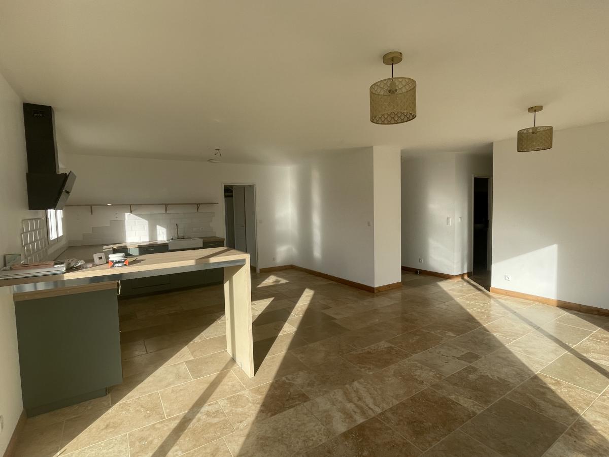 Vous découvrirez une belle pièce de vie lumineuse avec salon/séjour ouvert sur une cuisine aménagée et équipée, idéale pour des moments conviviaux. Une arrière-cuisine/buanderie complète cet espace pratique au quotidien.