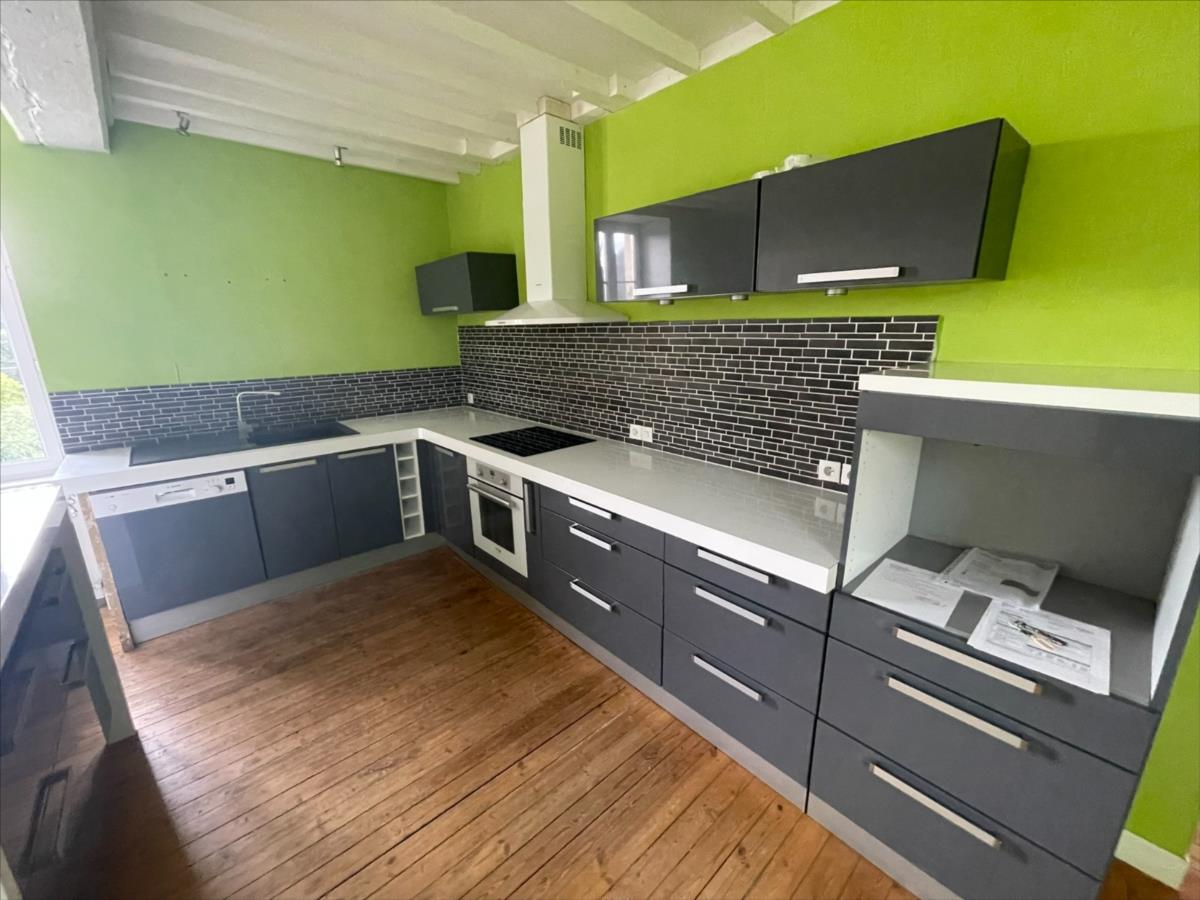 A l 'étage : pièce palière desservant d'un côté la cuisine aménagée équipée coin repas (env 22m²) et un séjour avec poêle à bois (env 31 m²) accès terrasse et jardin. Un dégagement avec accès jardin desservant 3 chambres, salle de bain, wc.