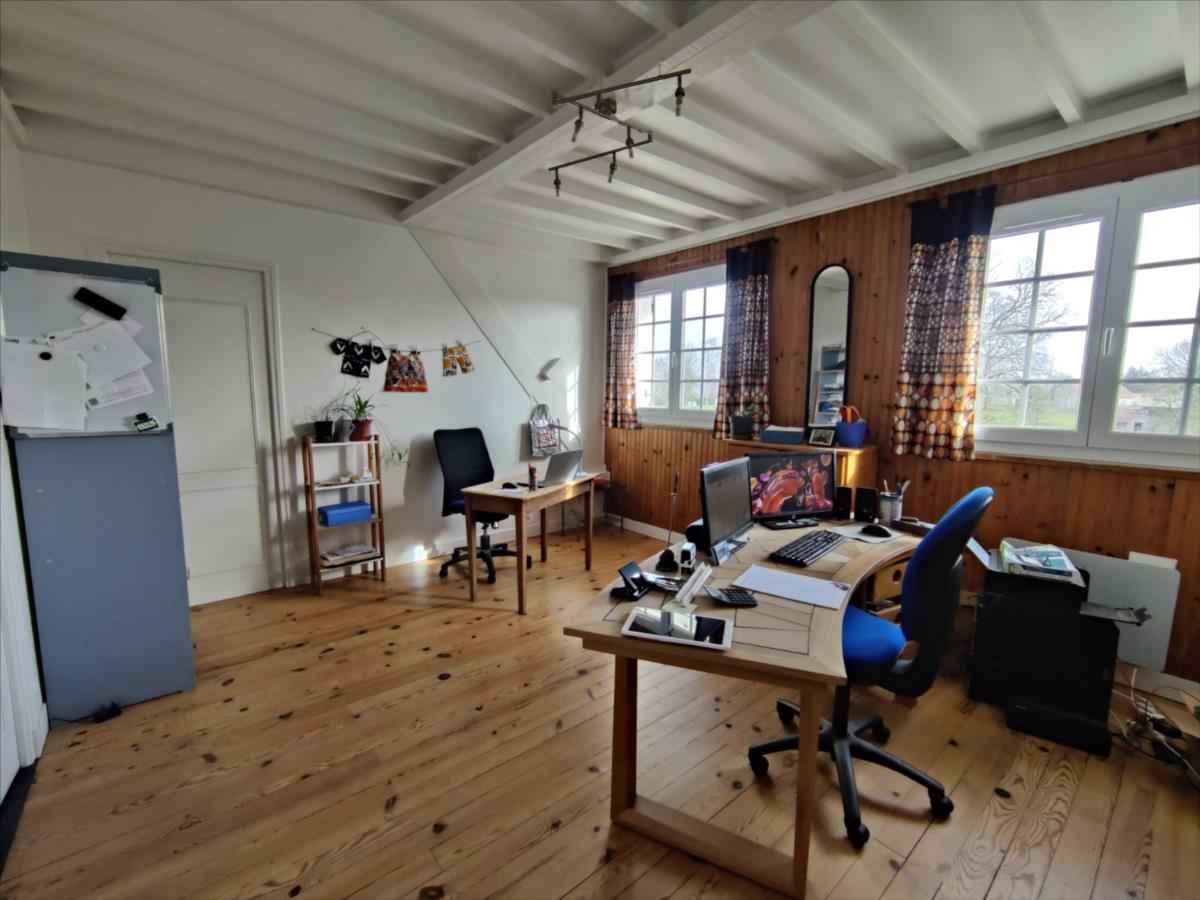 NOUVEAU 'Chez des Notaires à Mes Côtés' AUX PORTES DE FALAISE.Au calme et environnement verdoyant.Une maison individuelle d'une surface d'environ 127m².composée d'une pèce de vie ouverte sur une cuisine aménagée (env 48m²), deux chambres, salle d'eau et wc.A l 'étage : pièce palière /bureau, une grande chambre avec coin dressing ( env 19m²).Grenier aménageable : possible 4ème chambre (env 19m²).Sous-sol complet. Jardin arboré 4 414 m².Bâtiment annexe (env 38m²).