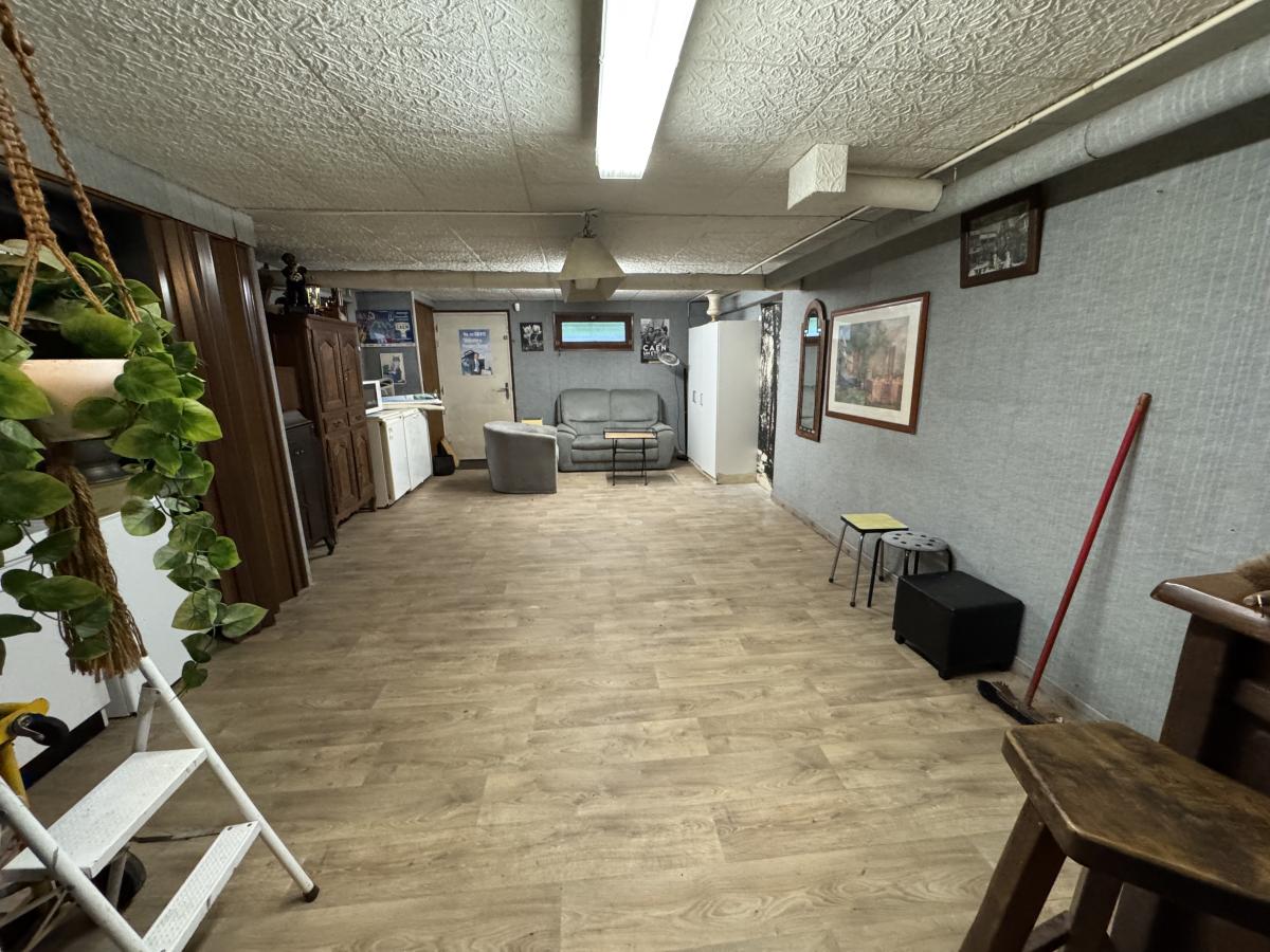Sous-sol complet avec garage, atelier, pièce, et cave