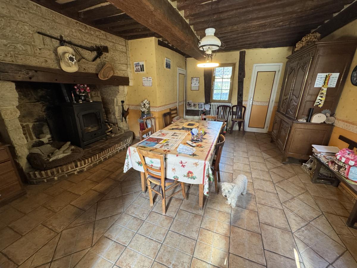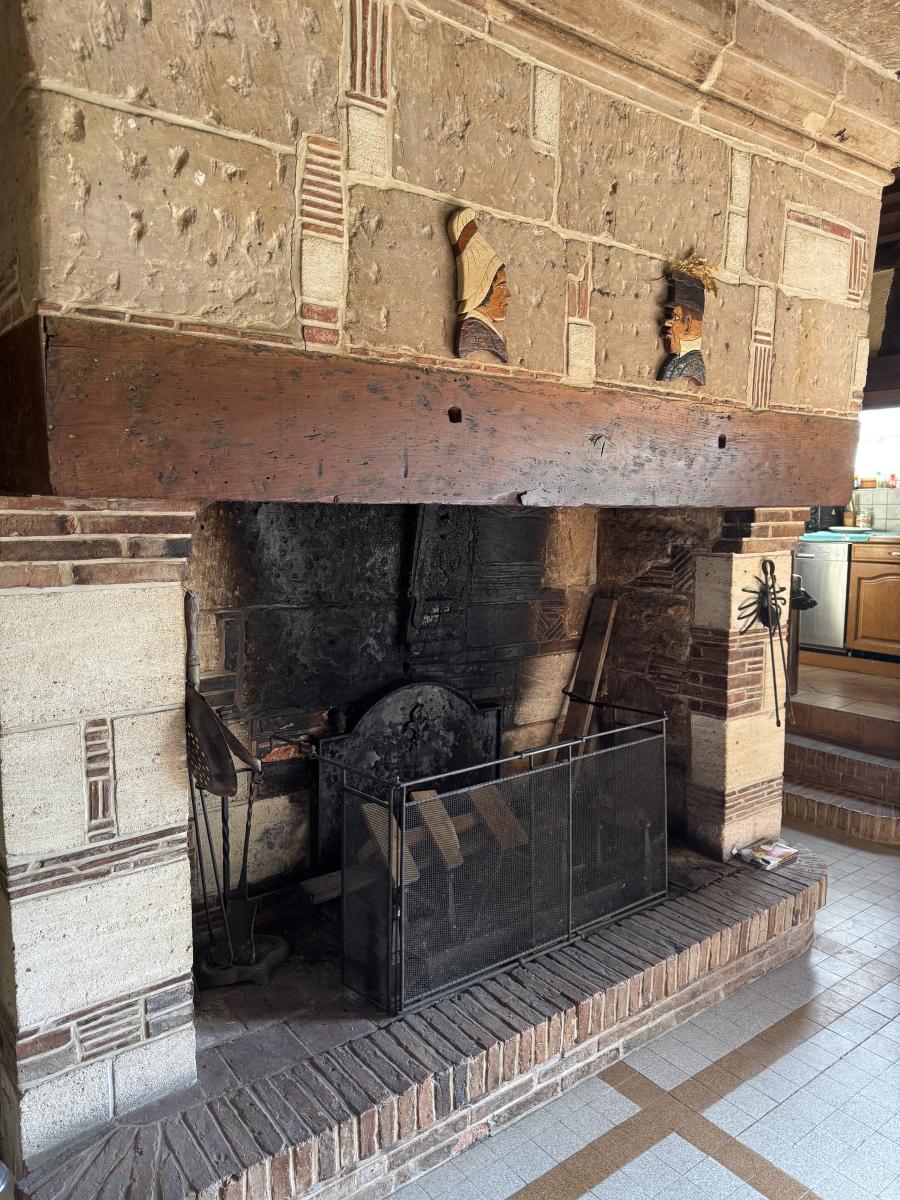 RDC: salle à manger 25m², cuisine, salon 35m² avec cheminée, wc douche et chaufferie.