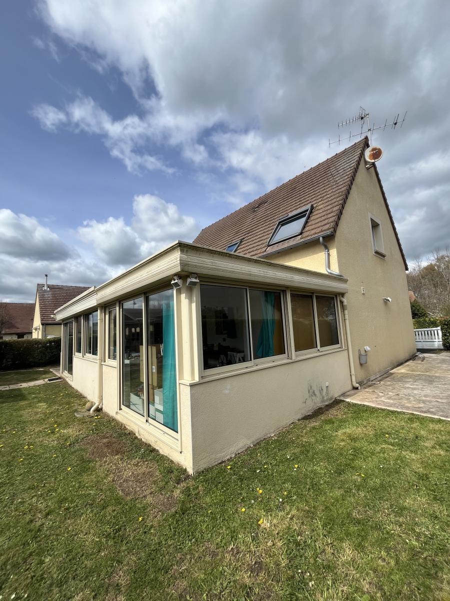 MEZIDON VALLEE D'AUGE, MEZIDON CANON, dans un secteur recherché, maison traditionnelle d'une superficie de 127 m² environ comprenant : entrée, séjour-salon donnant sur une grande véranda, cuisine aménagée et équipée ouverte sur le séjour, une arrière cuisine. A l'étage un palier desservant 3 chambres, rangements, salle de bains avec wc. Garage attenant. Abris bois. Jardin autour.