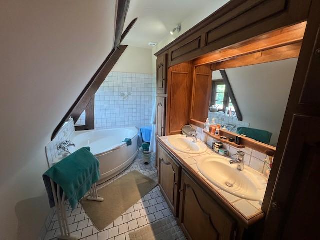 Proximité immédiate de Lisieux, maison d'habitation de construction " LEBAS" aux prestations de qualités construite en pierres et colombages et couverte en petites tuiles de Bavent dans un bel environnement comprenant :