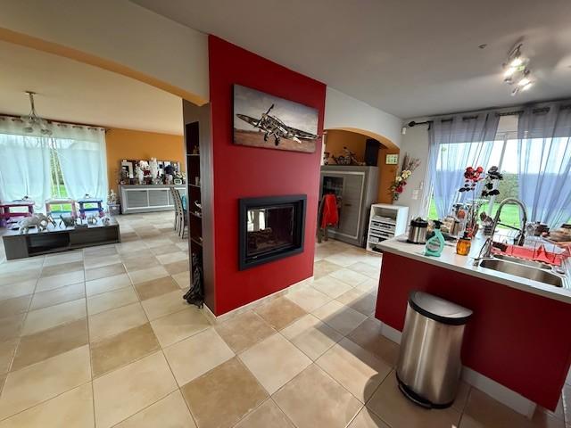 Entrée, cuisine aménagée et équipée ouverte sur salle-salon avec cheminée centrale double foyer, chauffage au sol pour partie et radiateurs électriques pour autre partie, wc indépendant, salle de bains avec baignoire et douche, buanderie dressing, 3 chambres.