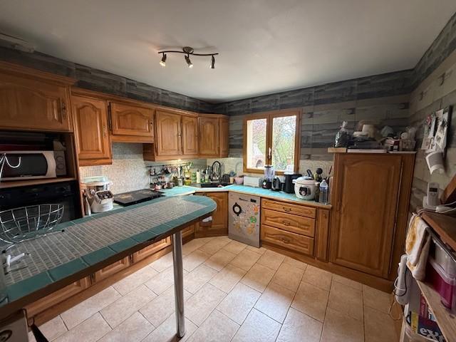 - A rez-de-chausée : Entrée, salle-salon, cuisine ouverte aménagée et équipée, salle de bains avec baignoire et douche, wc indépendant, garage avec buanderie et chaufferie fuel, 2 chambres.