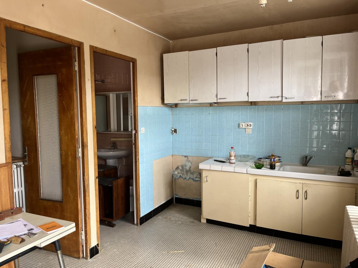 AMFREVILLE, sur 700m² de terrain maison ancienne à rénover, comprenant au rez-de-chaussée : cuisine, salle à manger avec cheminée, salon avec cheminée, salle de douche avec wc. A l'étage : trois chambres. Dépendances attenantes à usage de remise, chaufferie...