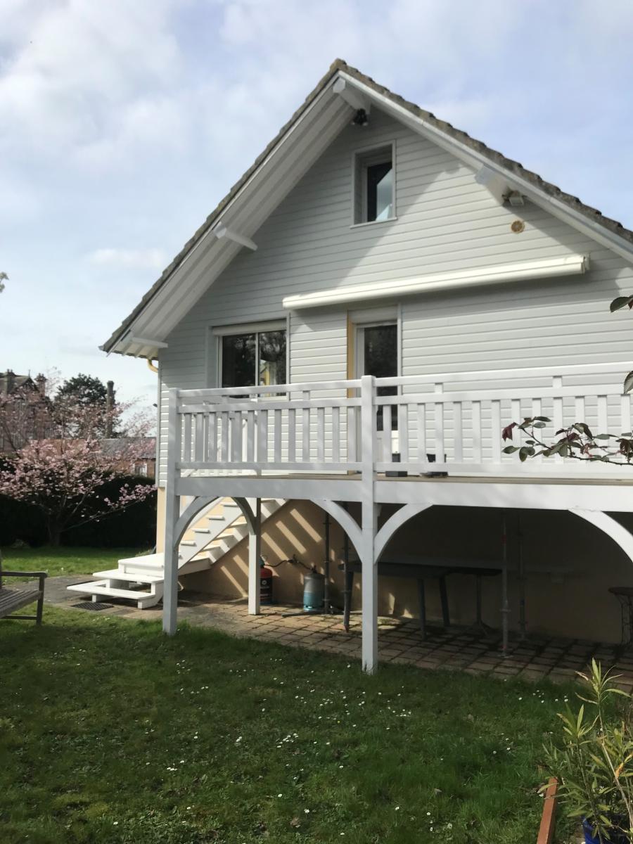 DOZULE, bourg tous commerces et écoles à 20 minutes de CAEN et 10 minutes de CABOURG, maison ancienne ( édifiée en 1947) rénovée avec soin, comprenant en rez-de jardin : trois belles chambres, salle de bains, buanderie, wc. Au rez-de-chaussée surélevé : spacieuse pièce à vivre traversante avec cheminée (insert) donnant sur cuisine ouverte et terrasse bois orientée Sud, bureau, wc et douche. Au 1er étage mansardé : une pièce palière, une chambre. Dépendances en bois à usage de garage et remises. L'ensemble sur 750m² de jardin.