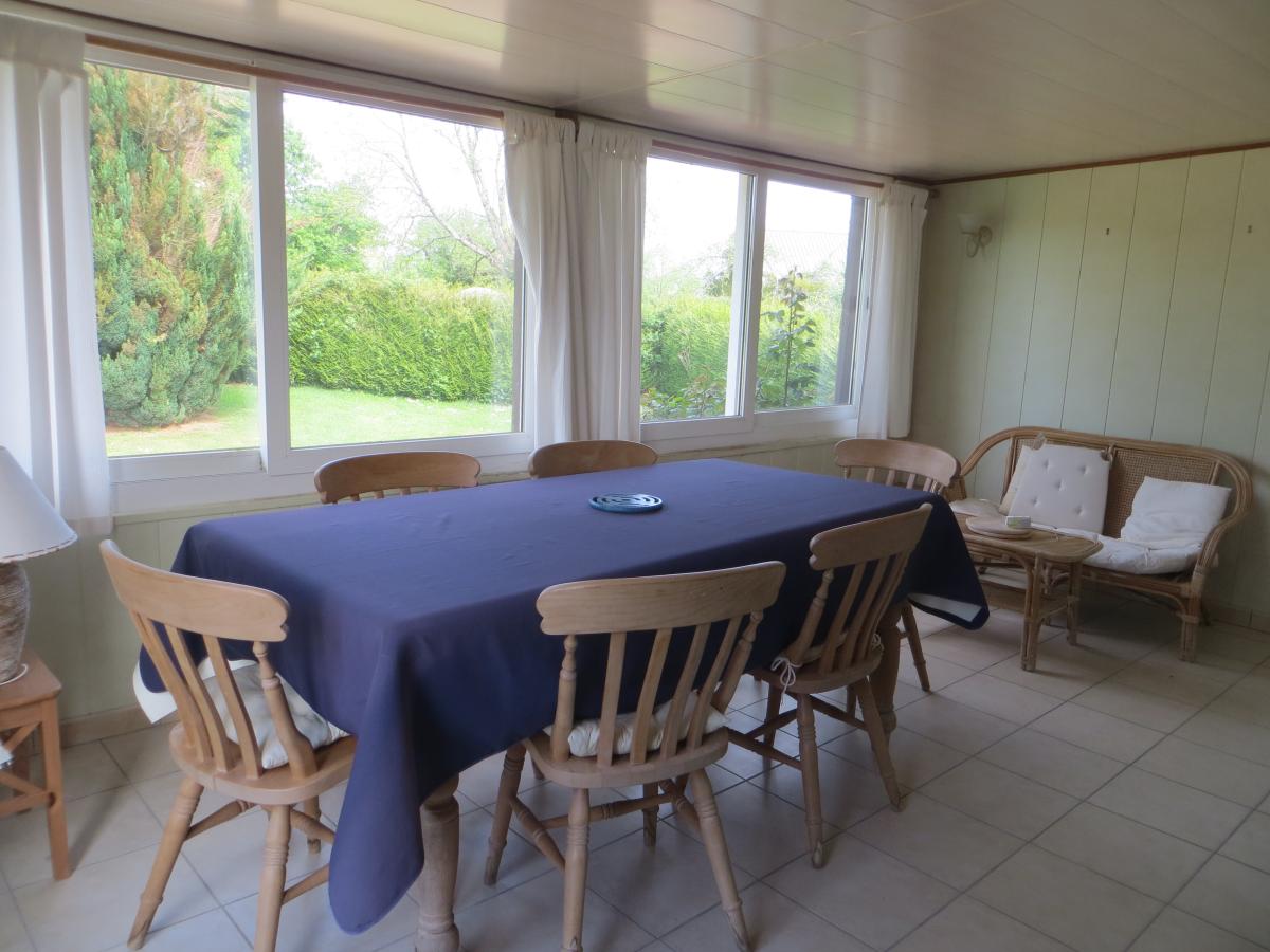- au rez-de-chaussée : une salle à manger - séjour avec cheminée insert, une cuisine aménagée, une véranda - salon, une salle d'eau avec WC,