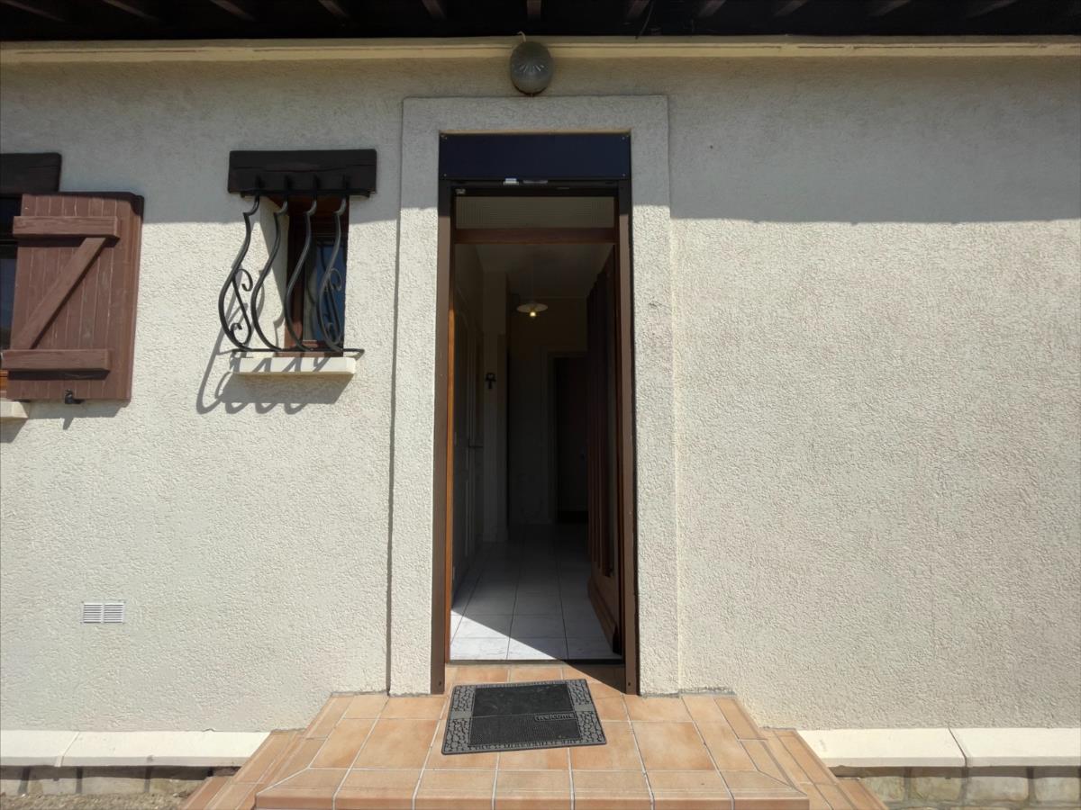 salon, cuisine aménagée, terrasse dallée. Au 1er palier, chambre 3 mansardée.