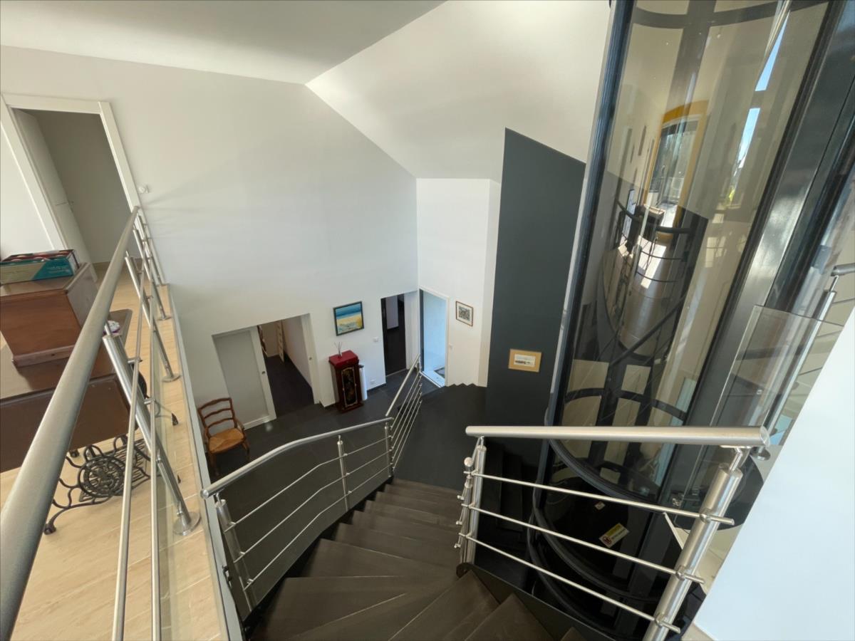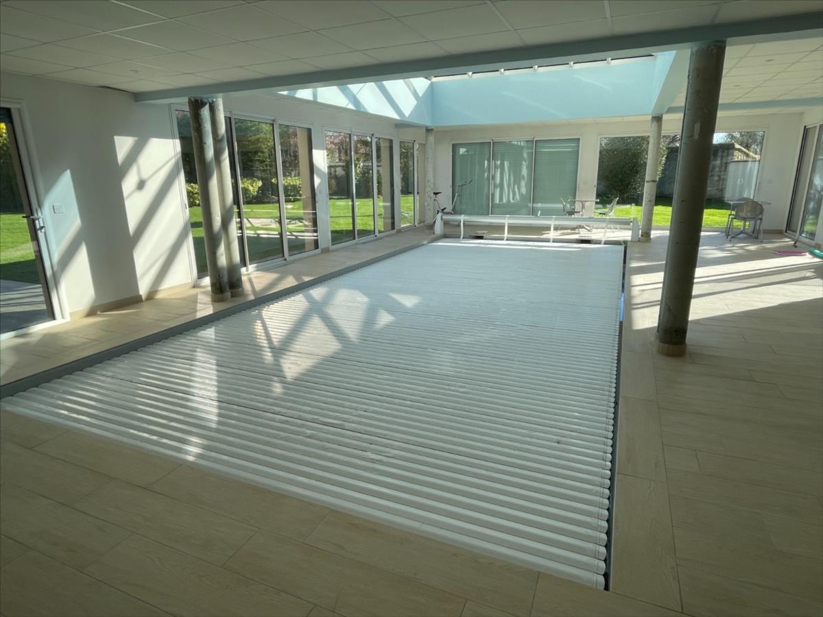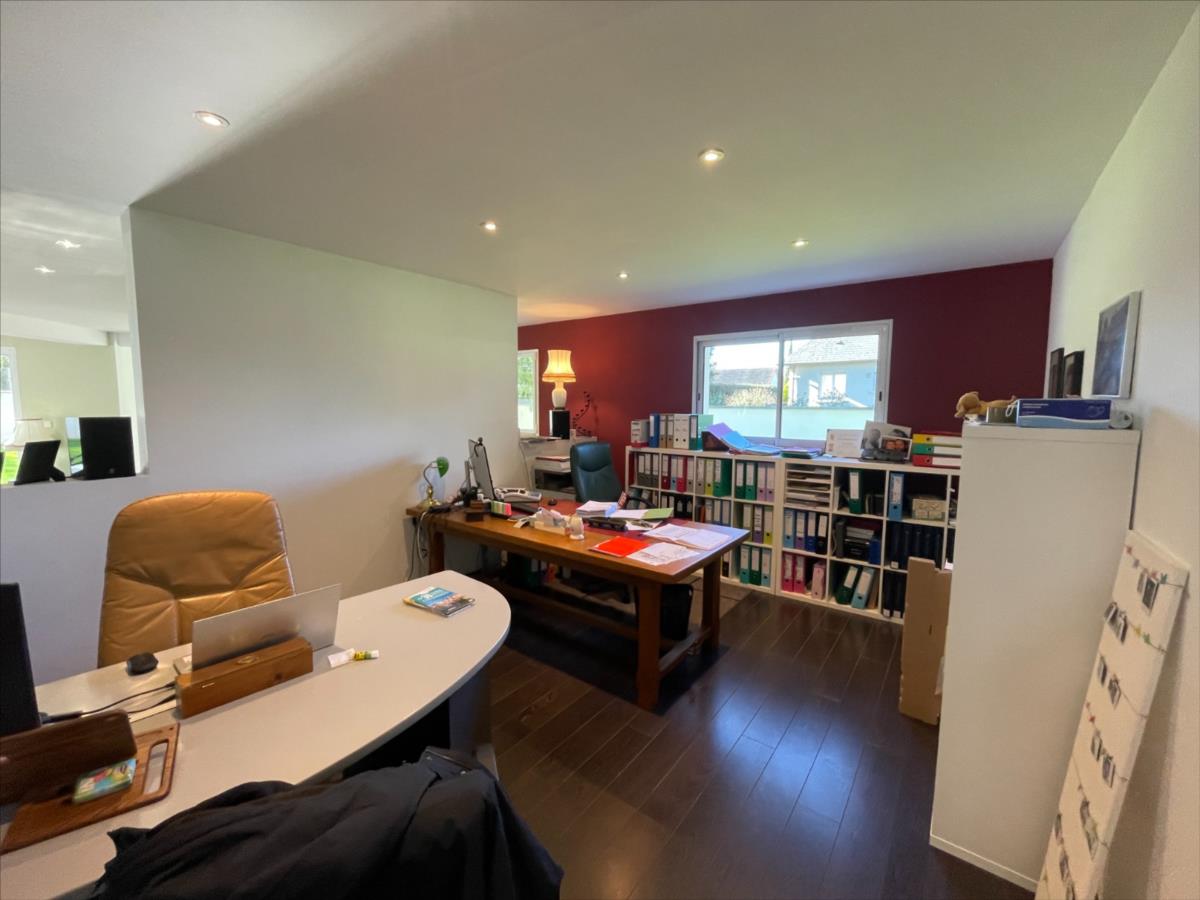 ascenseur, bureau 18m², 1 suite : chambre 20m²+ sdb (baignoire et douche) placard, piscine 40m² intérieure 120m² chauffée avec sde et WC,