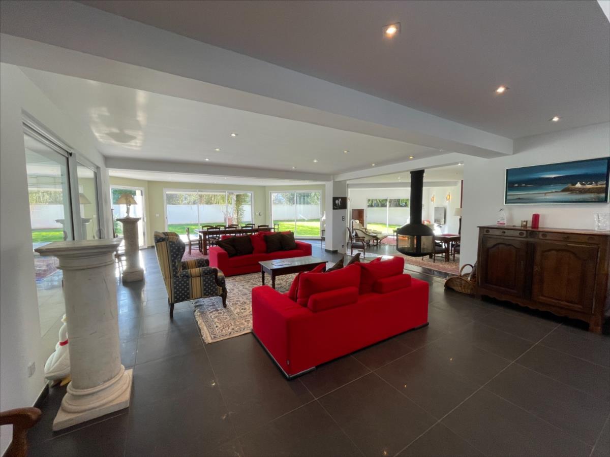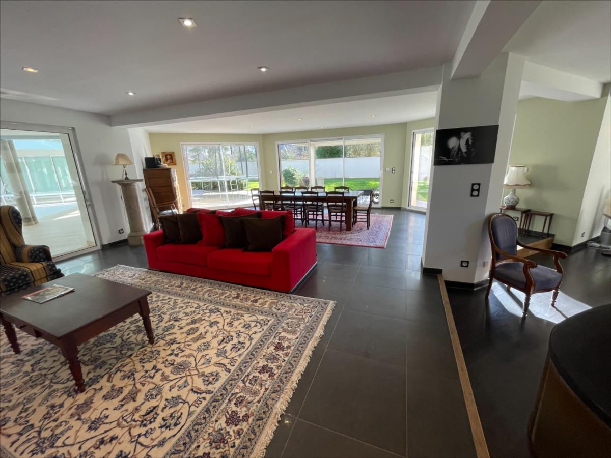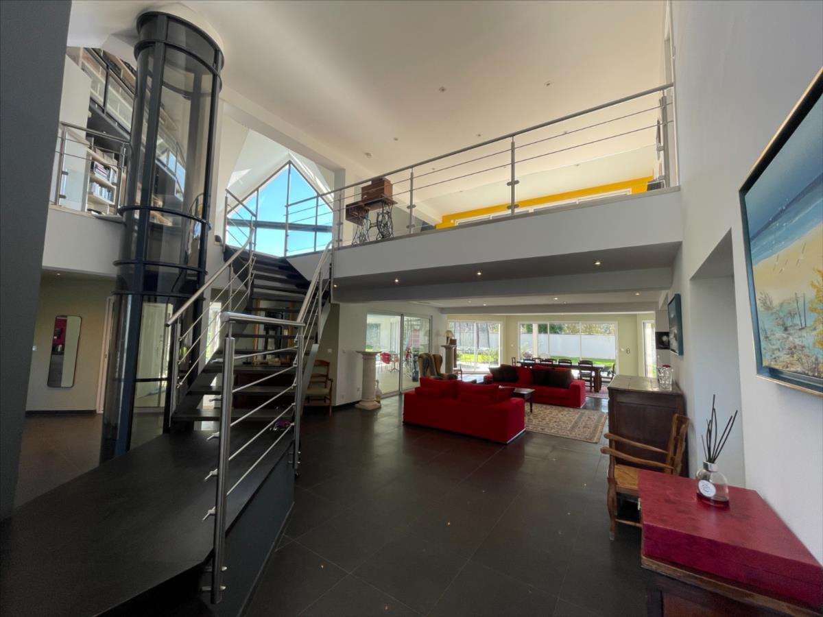ascenseur, bureau 18m², 1 suite : chambre 20m²+ sdb (baignoire et douche) placard, piscine 40m² intérieure 120m² chauffée avec sde et WC,