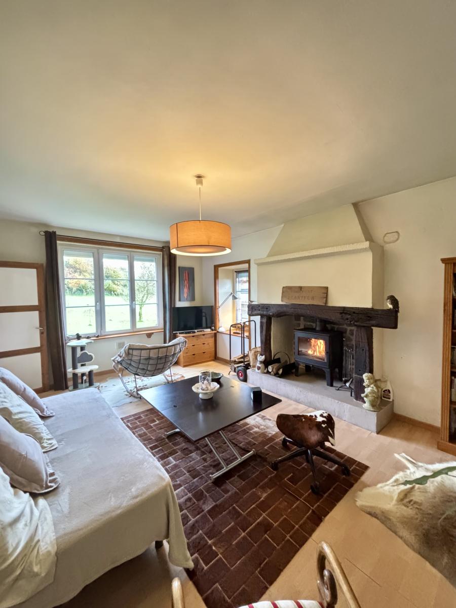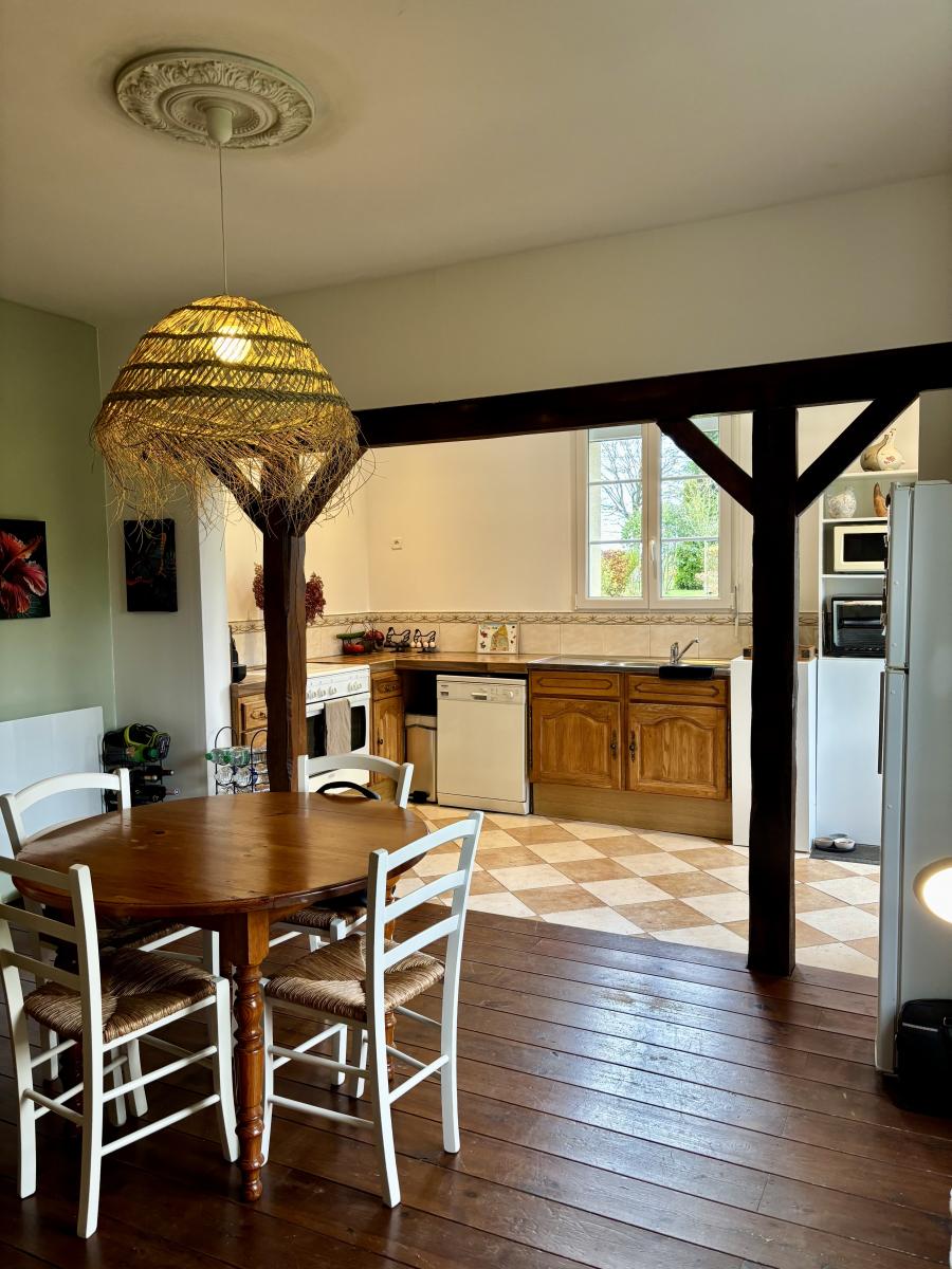 La maison principale, bien entretenue, se compose au rez-de-chaussée d’une cuisine ouverte sur la salle à manger, donnant accès à une terrasse, d’un salon équipé d’un poêle à bois et d’une salle de bains.