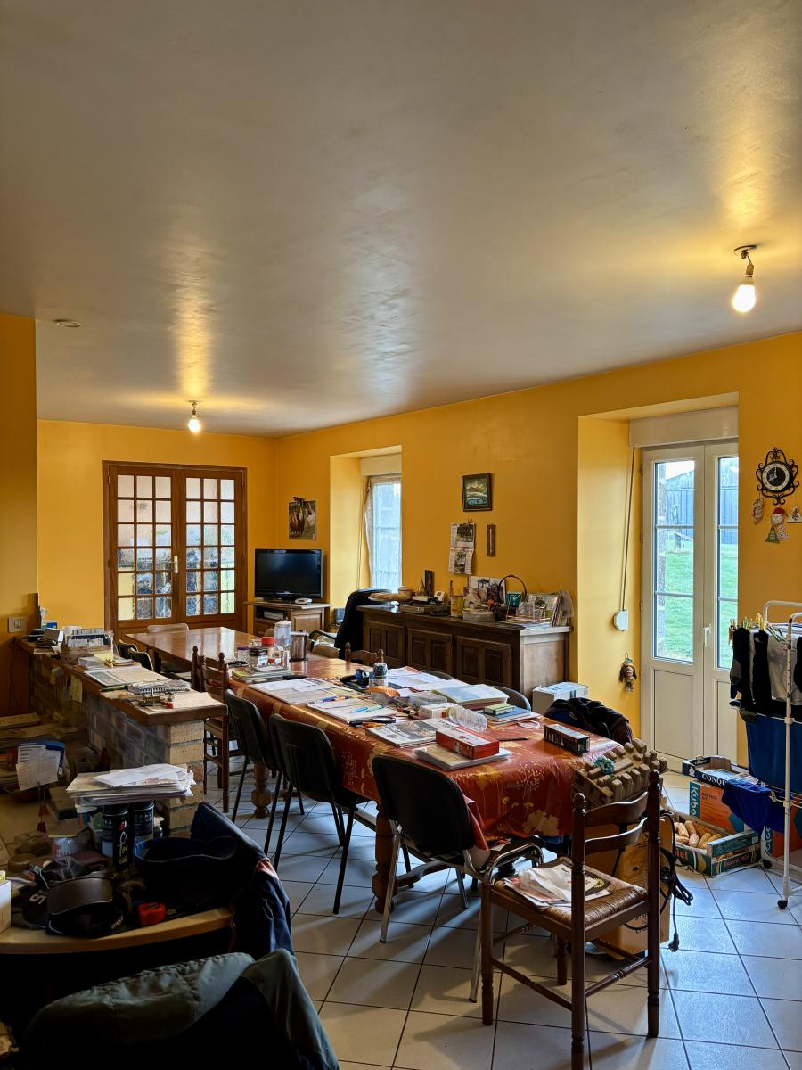 1. Une maison d’habitation de type longère en pierres de 134m² habitables, rénovée en 1995 et offrant une vie de plain-pied. Elle est constituée comme suit :
