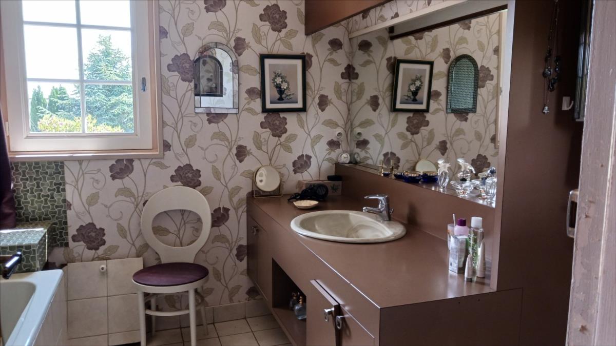 Un pavillon de construction qualitative datant de 1976, proche du centre ville et avec une agréable vue panoramique.  Il est composé de :- au rez-de-chaussée : entrée, spacieux salle-salon avec cheminée-insert, bureau, cuisine aménagée, arrière-cuisine, deux chambres, salle de bains, WC, dégagements avec de nombreux placards intégrés.- à l'étage : palier-couloir, quatre chambres, salle de bains, WC; trois remises mansardées sous-pentes.Garage attenant et autre petit garage non-attenant.Terrain arboré autour d'une surface d'environ 2.339 m².