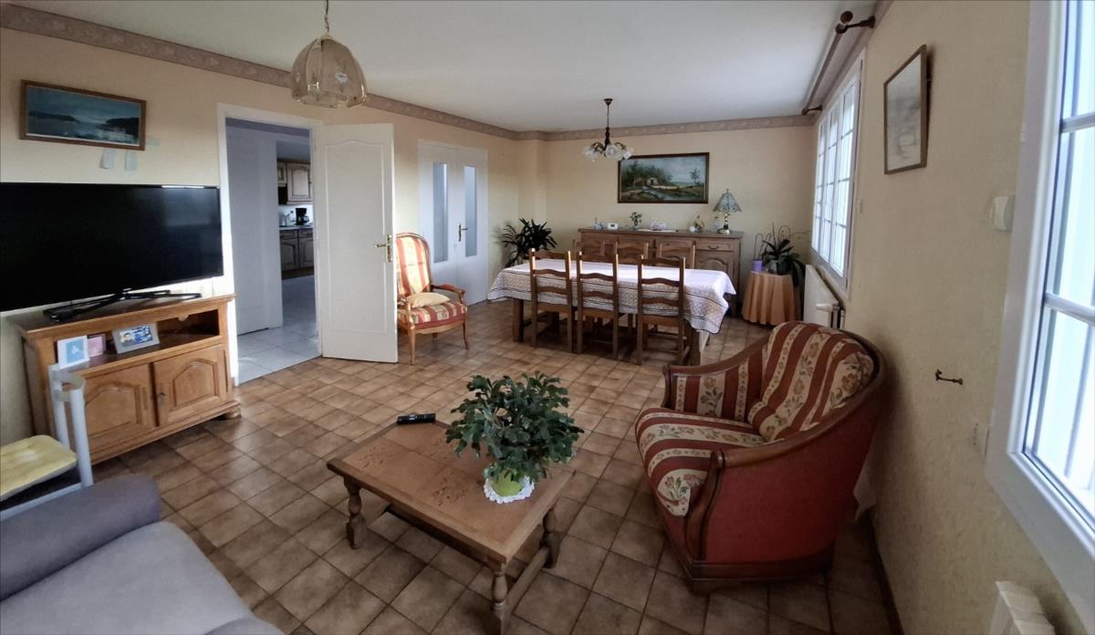 - au rez-de-chaussée : couloir, cuisine aménagée avec jolie vue dégagée, salon-séjour, trois chambres, salle de bains, WC.