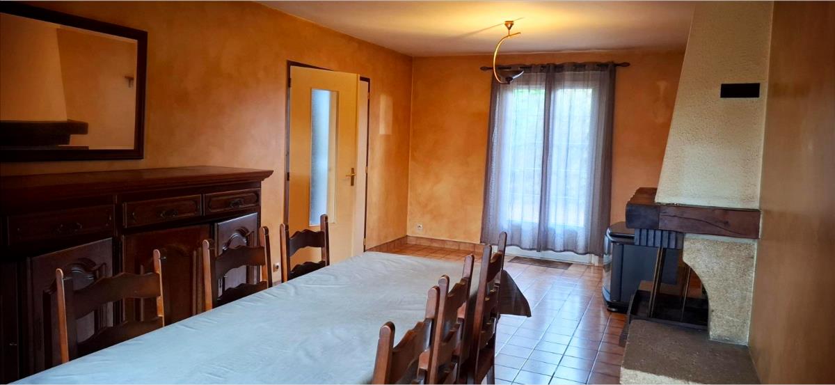 - Rez-de-chaussée : entrée, cuisine aménagée, salon-séjour avec cheminée foyer ouvert, couloir desservant une chambre, salle de bains et WC indépendants.