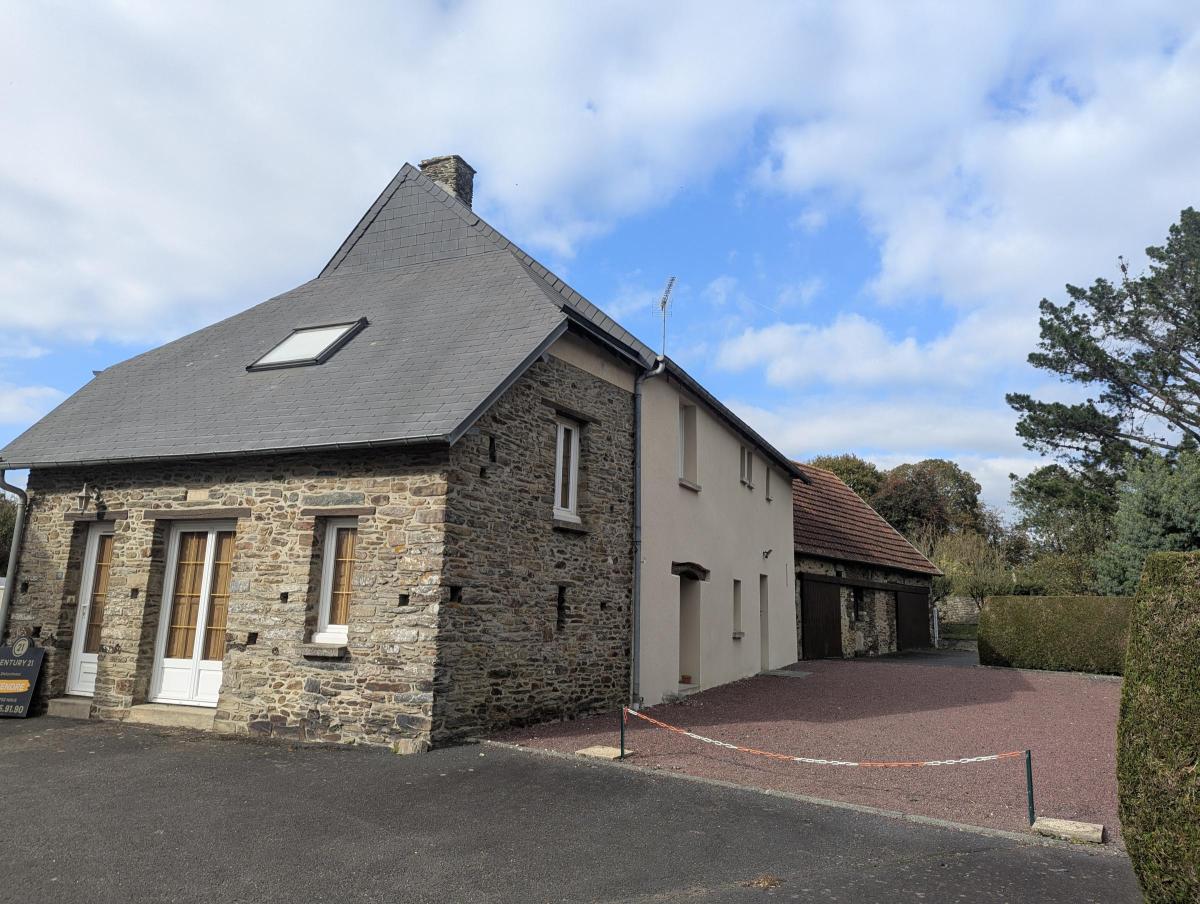 Maison dont la façade côté jardin est en pierre, située dans un environnement calme.