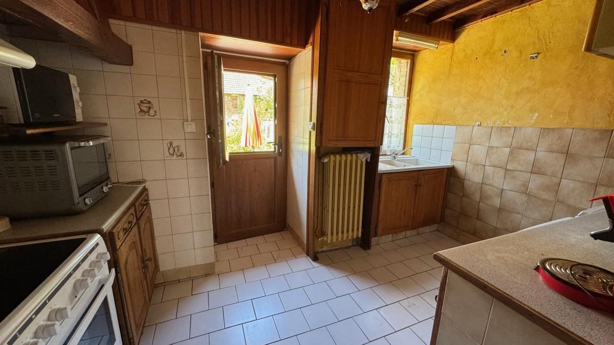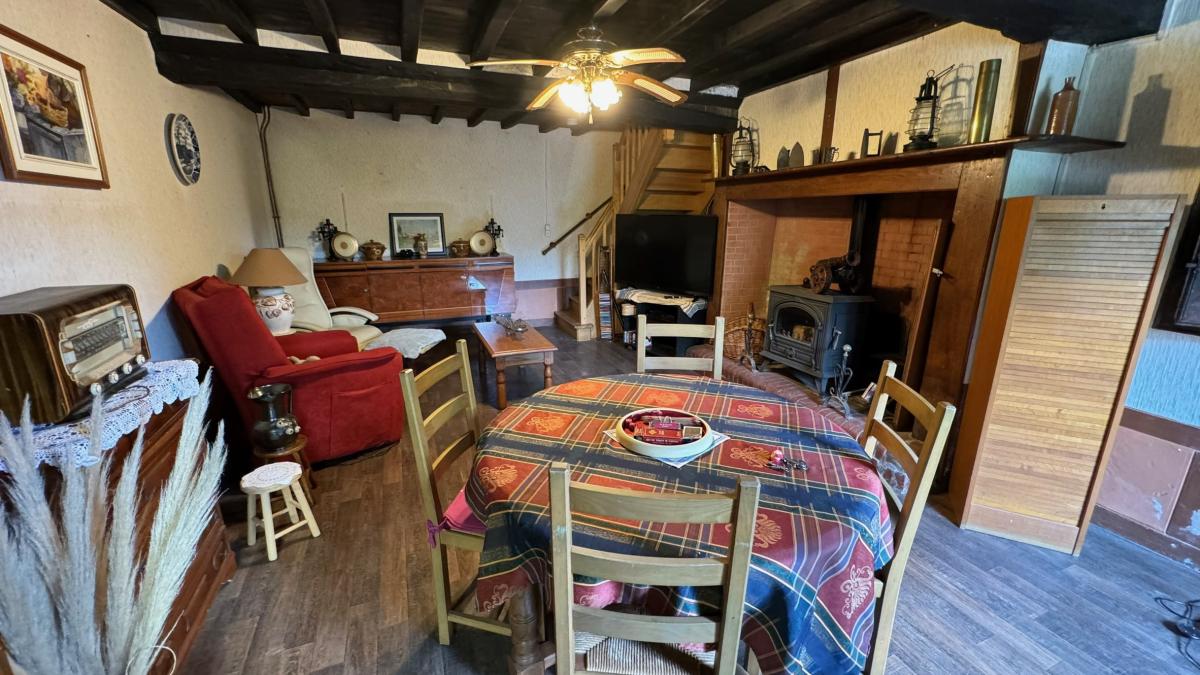 - Au rez-de-chaussée : entrée dans séjour de 22.8m² avec cheminée foyer ouvert, cuisine de 8.5m² avec accès jardin, WC et chaufferie, salon de 27.7m² avec cheminée poêle à bois, autre pièce.