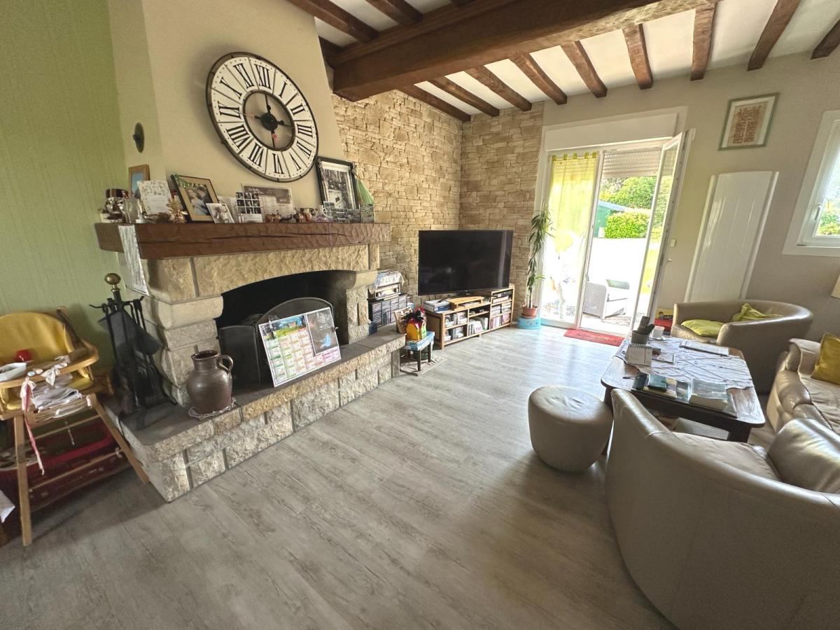- au rez-de-chaussée : une entrée, une cuisine ouverte sur un séjour-salon avec cheminée foyer ouvert, une buanderie, deux chambres, une salle d'eau et WC.