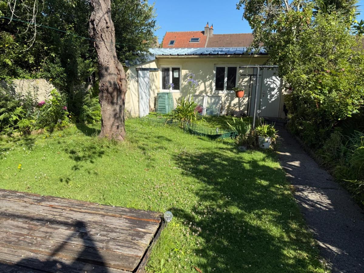 Cherbourg en Cotentin : Maison sur sous-sol complet, comprenant : -Au rez-de-chaussée–entrée, salle à manger, donnant sur une terrasse de 23 m², cuisine aménagé de 13 m², salle à manger et séjour-salon avec cheminée, salle d’eau, chambre de 11,8 m², WC avec lave mains, 2ème chambre de 12 m2 - Au premier étage: mezzanine lumineuse de 11 m², desservant une troisième chambre de 12 m², avec vue sur la rade de Cherbourg et une quatrième chambre de 12 m², salle d’eau et WC - au sous-sol : garage, buanderie, atelier, 88 m². Cour devant et jardin derrière Atelier au fond du jardin en Agglo et couvert en bac acier de 23 m²