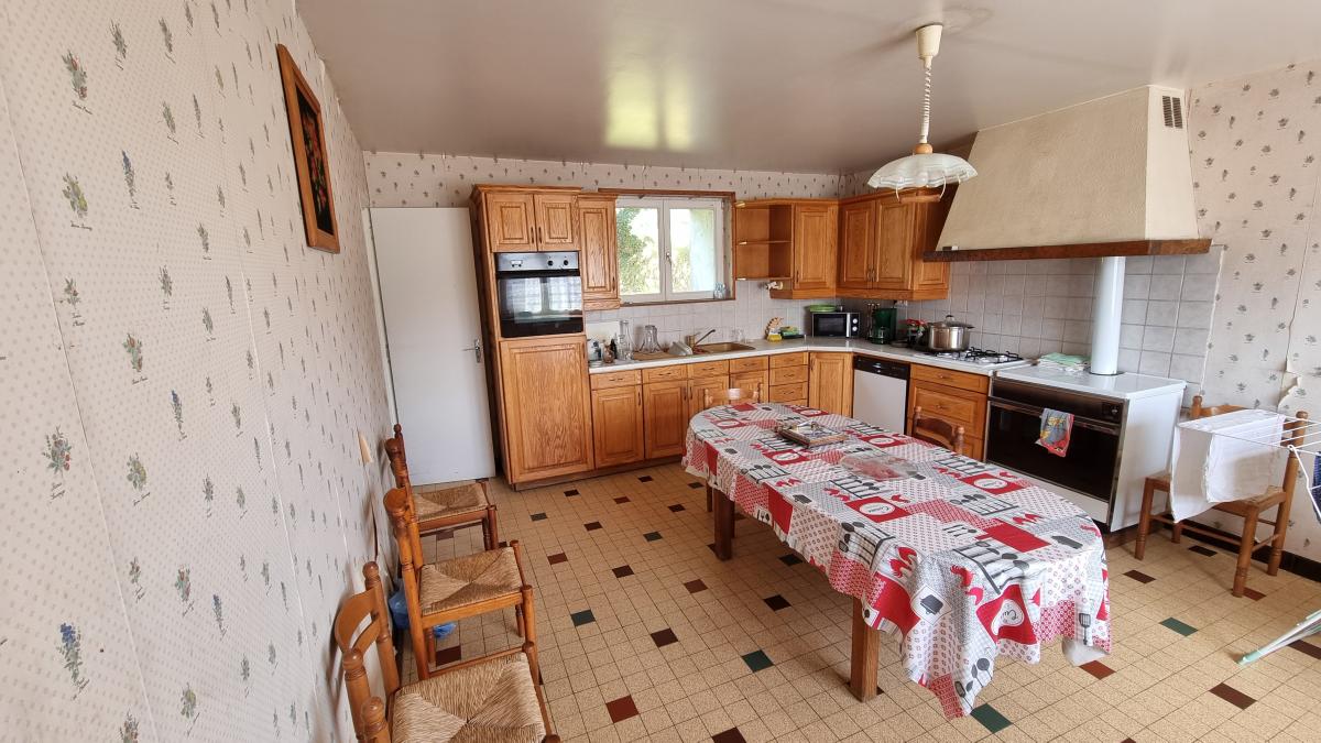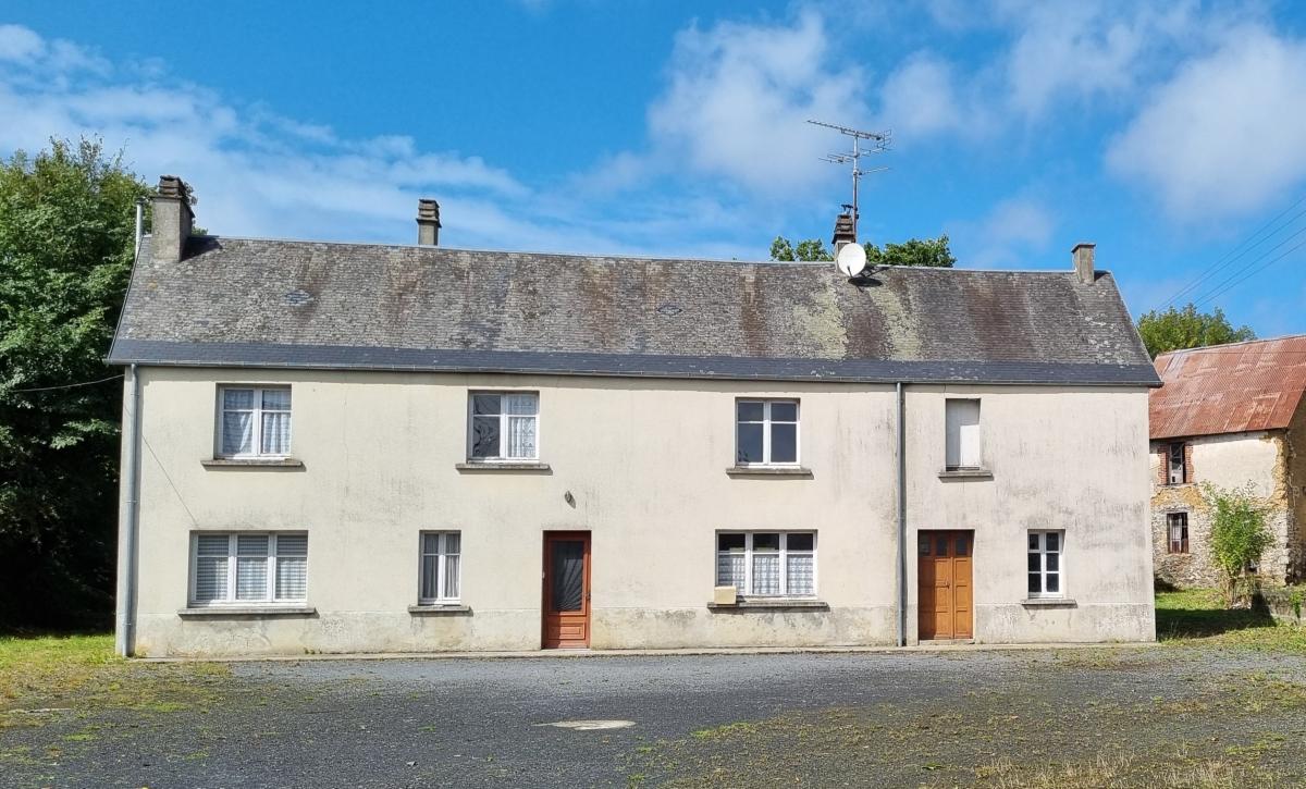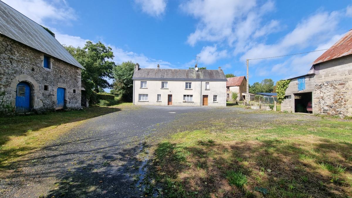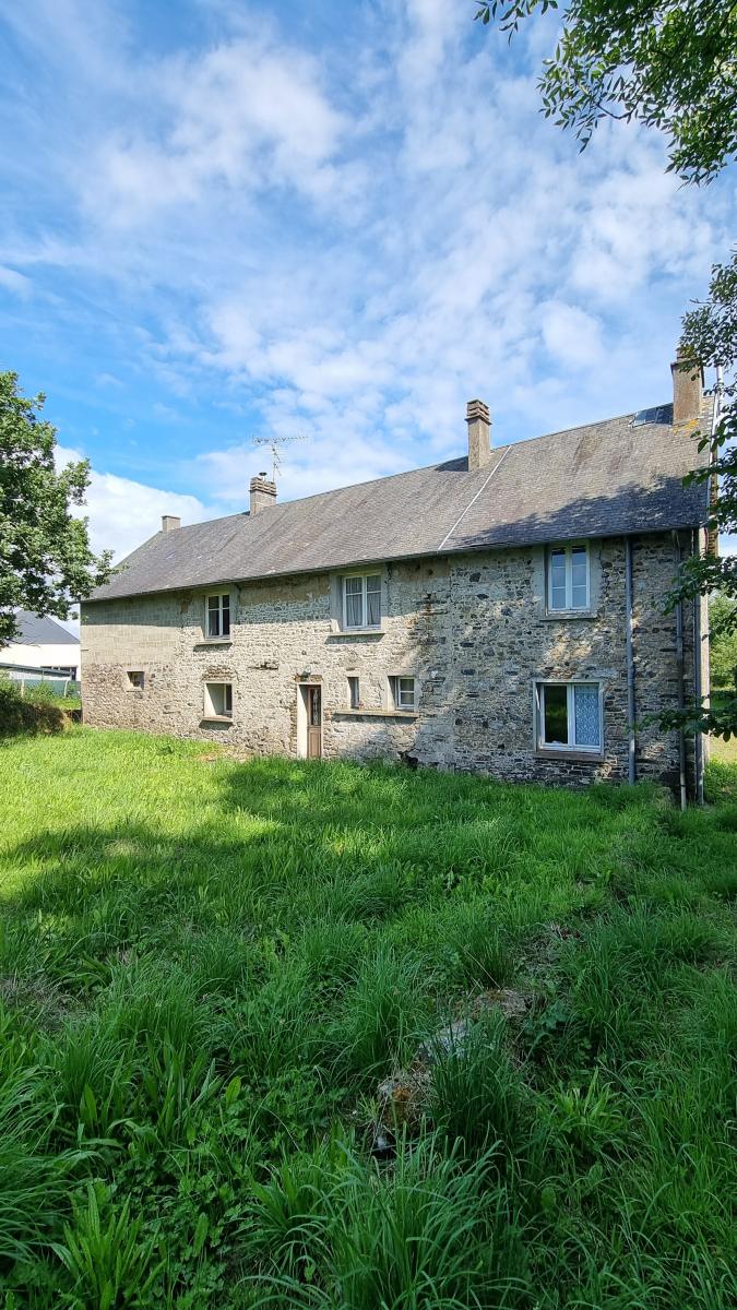 Entre Coutances et Saint-Lo Une propriété en pierre avec dépendances comprenant : Au rez-de-chaussée : Entrée, cuisine, une salle à manger /salon avec une cheminée, wc, salle d'eau, une chambre. A l'étage : couloir desservant quatre chambres, wc avec lavabo. Cour. Sur le terrain : dépendances à usage de cellier/chaufferie et grenier au-dessus. Dépendance ancienne étable à usage de garage. Une étable avec une cave et grenier. Une ancienne maison en ruine. Terrain autour.