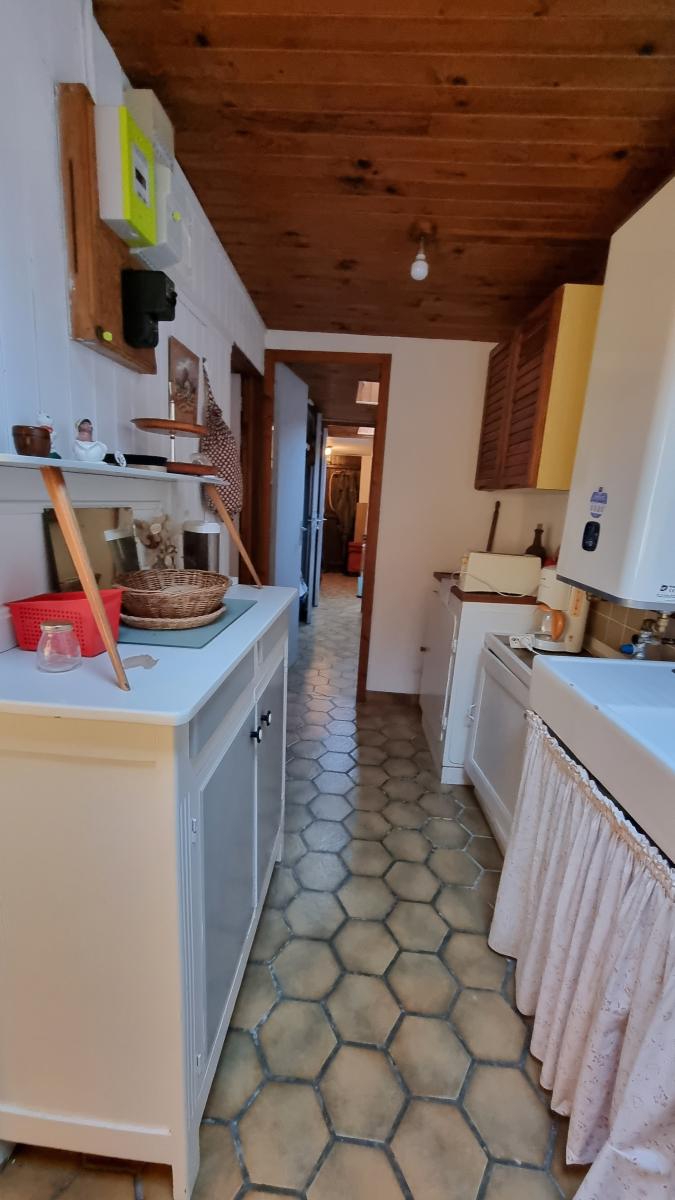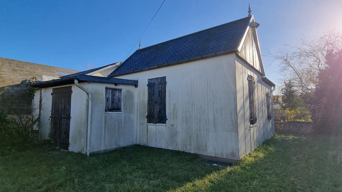 Une maison de plain-pied comprenant : Au rez-de-chaussée : une cuisine, un salon, une salle d'eau, deux chambres. Combles. Surface terrain : 203 m²