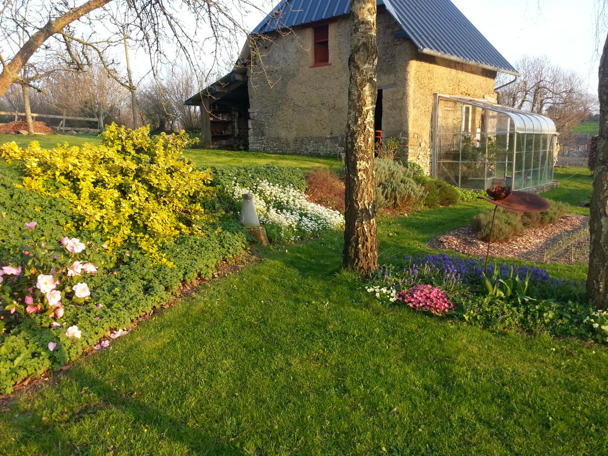 Sur le terrain un beau jardin arboré et un potager.
