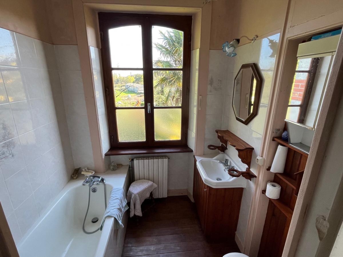 Au 1er étage : palier desservant 3 chambres, salle de bains avec wc.