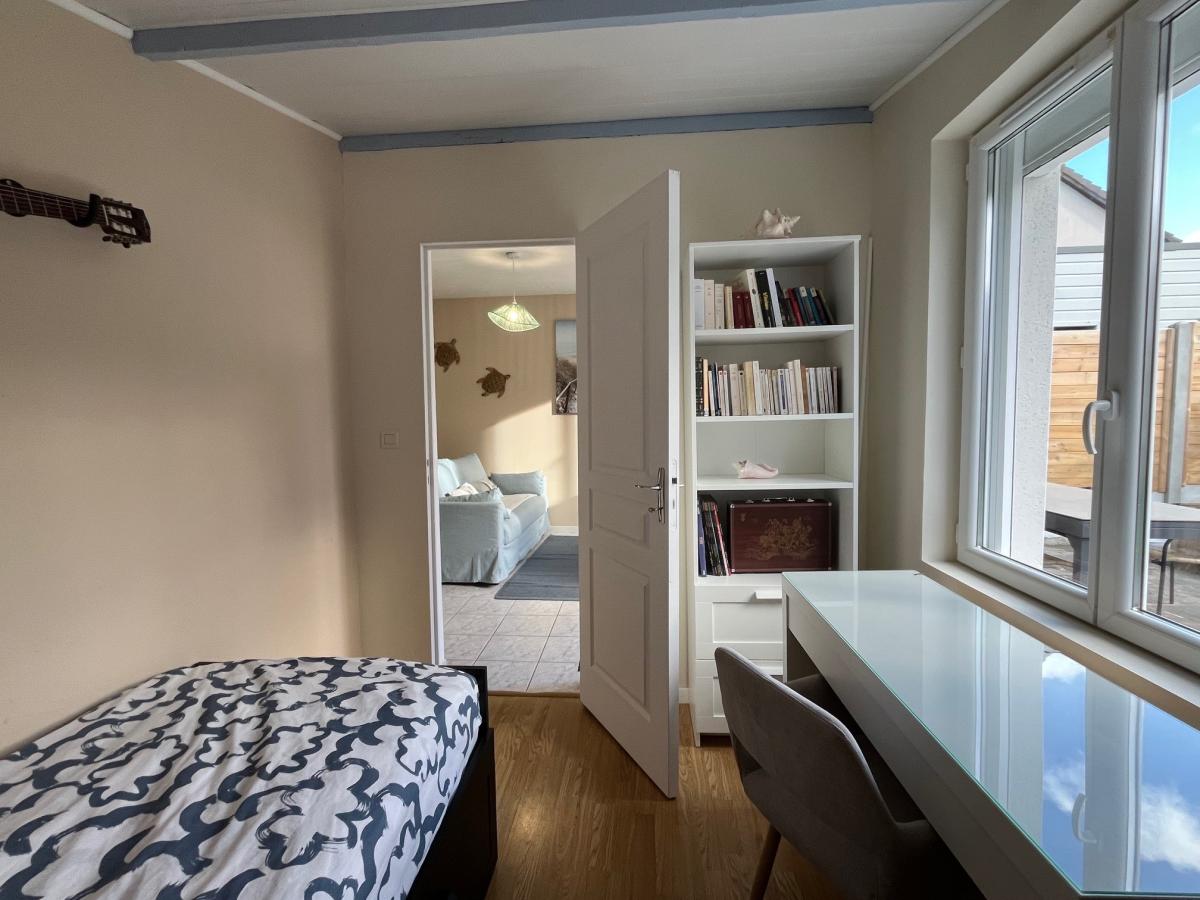 La deuxième maison vous offre une vie de plain-pied, elle comprend : une cuisine aménagée-équipée ouverte sur la pièce de vie, deux chambres, dégagement desservant la salle d'eau avec wc.