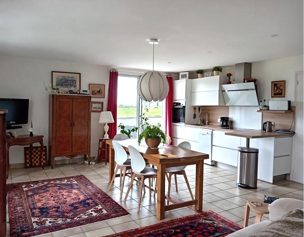 Au rez-de-chaussée : belle cuisine aménagée avec salle à manger, salon, dégagement, dressing-buanderie, wc, salle d'eau, chambre, cellier avec dressing, garage avec porte automatique