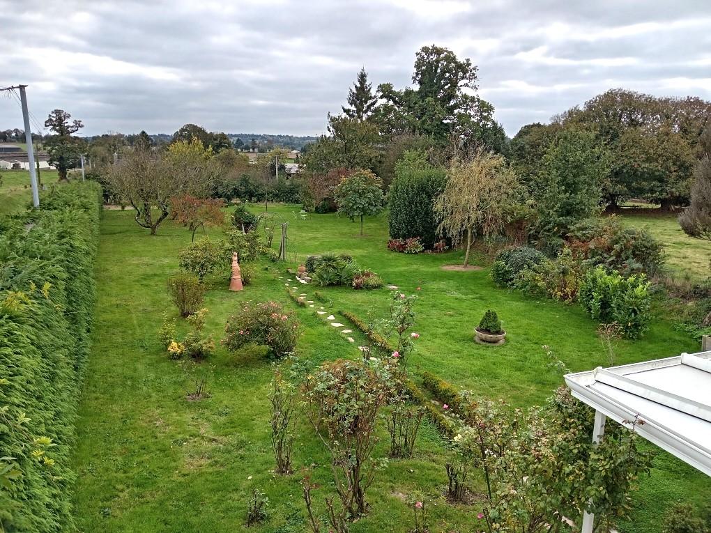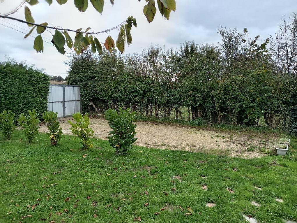 Pergola devant exposée SUD avec store, terrasse exposée Ouest, abri de jardin, aire de stationnement.