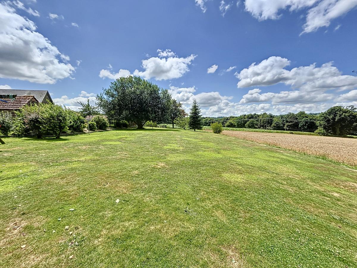 Au rez-de-chaussée : entrée, salon avec poêle à bois (avec réserve intégrée) et salle à manger, cuisine adjacente aménagée et équipée (lave-vaisselle, four, microonde, plaque de cuisson, hotte, élément de rangement), deux grandes chambres, salle de bain, wc.