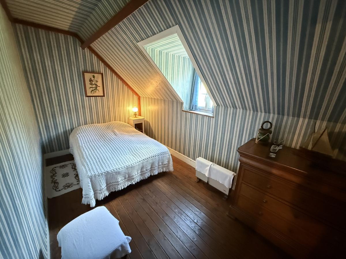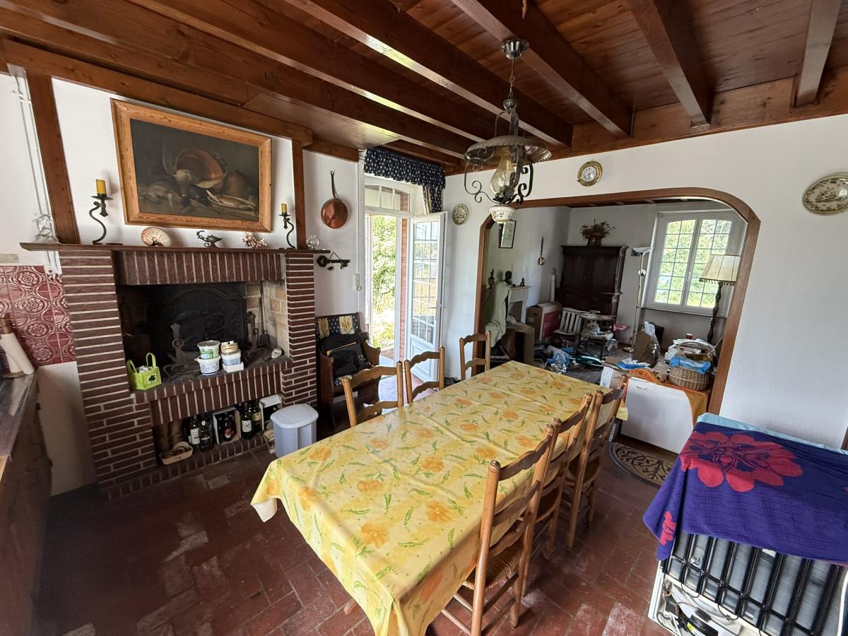 Visite virtuelle disponible, merci de nous demander le lien par mail. A l'entrée de Carteret, maison comprenant: - Au rez de chaussée surélevé: porche d'entrée, WC, séjour avec cheminées et coin-cuisine. - A l'étage: palier, deux chambres, salle de bains. - Au deuxième étage: grenier. Cave. jardin avec garage indépendant et parking.