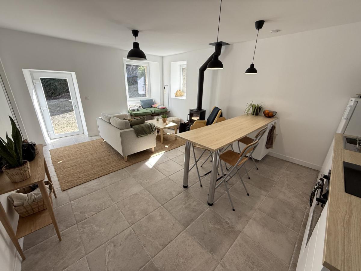2°) Maison annexe entièrement refaite à neuf comprenant séjour avec poêle à bois et cuisine ouverte équipée, salle d'eau, WC, deux chambres. Garage fermé à la suite et triple garage ouvert. Jardin.