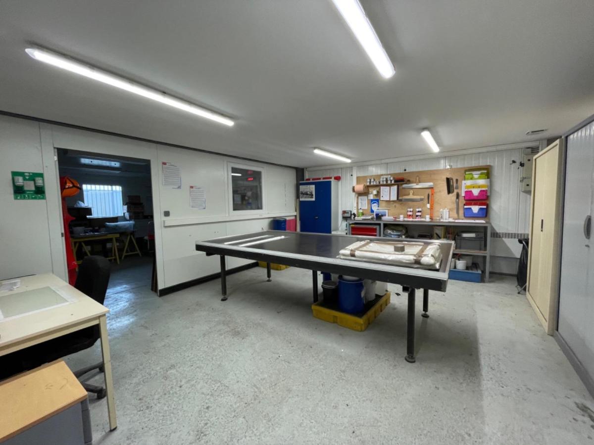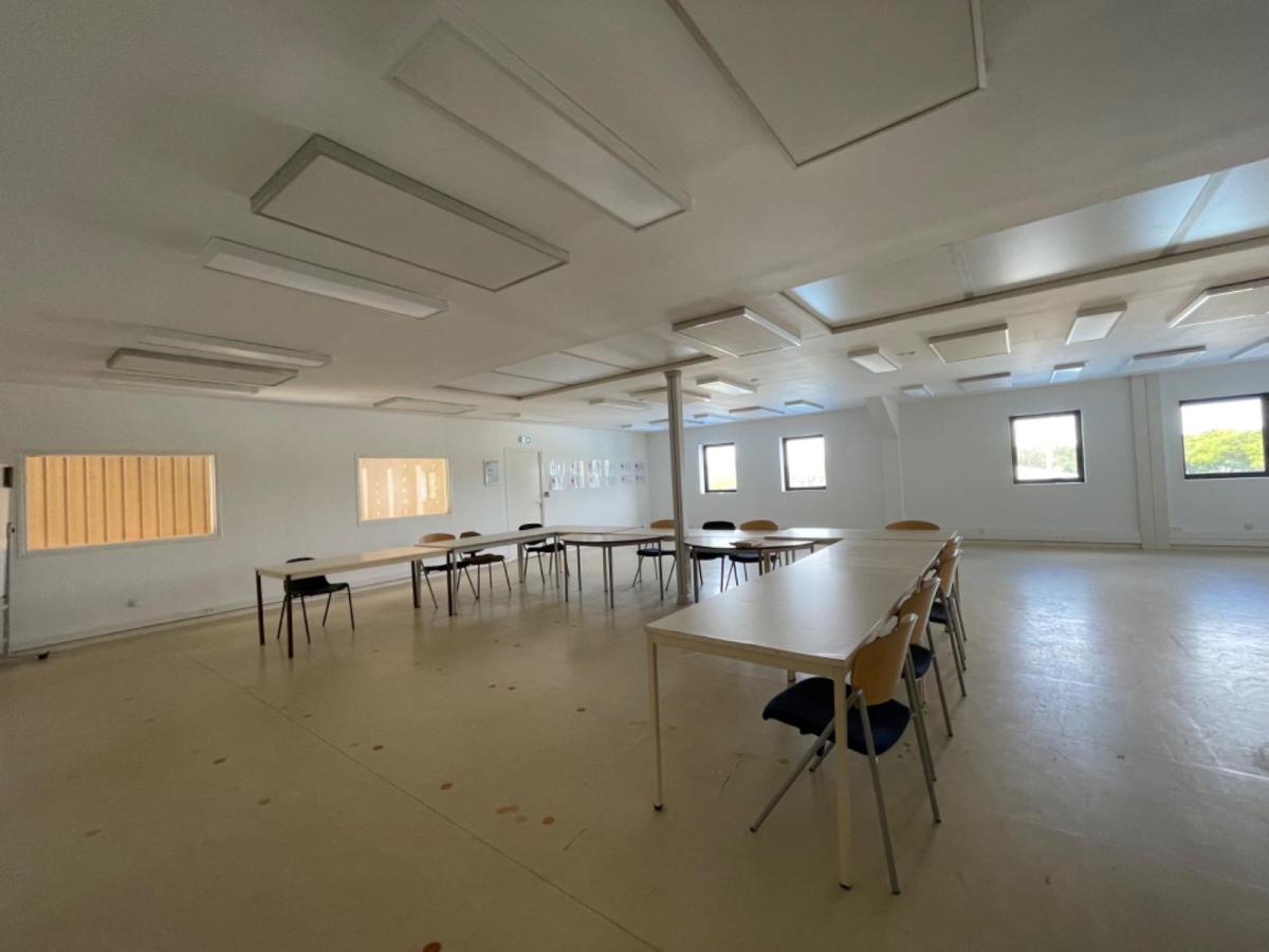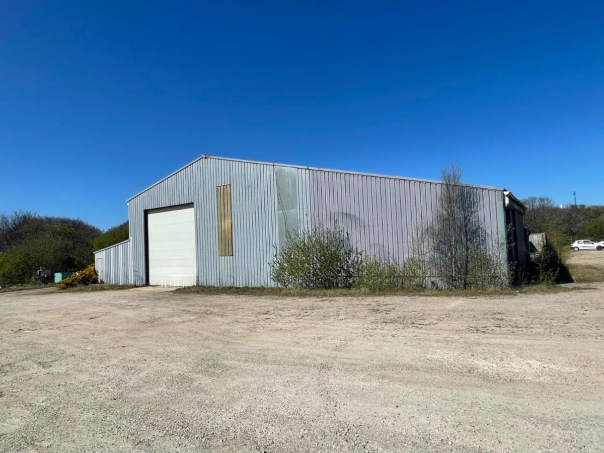 Ensemble de bâtiments, composé de : - Bâtiment à usage d’atelier de 1355m² sur terrain de 5916m². Actuellement loué. - Bâtiment de type hangar fermé de 1100m² avec aire d’entreposage goudronnée sur terrain de 2000m². Actuellement loué. - Ancien atelier sur terrain de 2000m², actuellement libre de toute location.