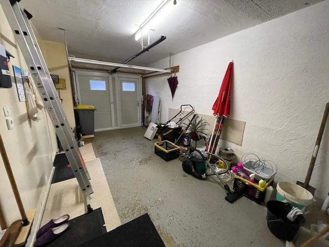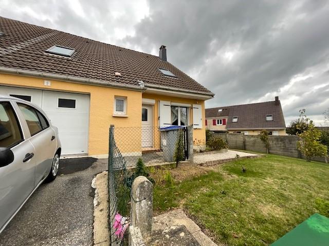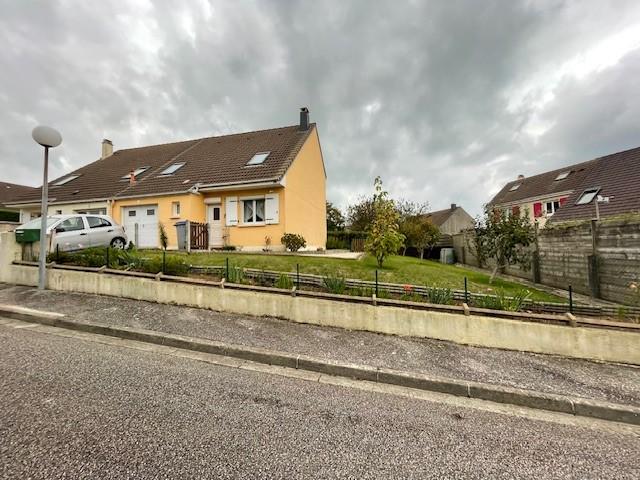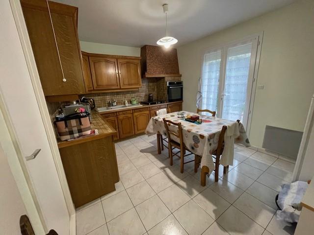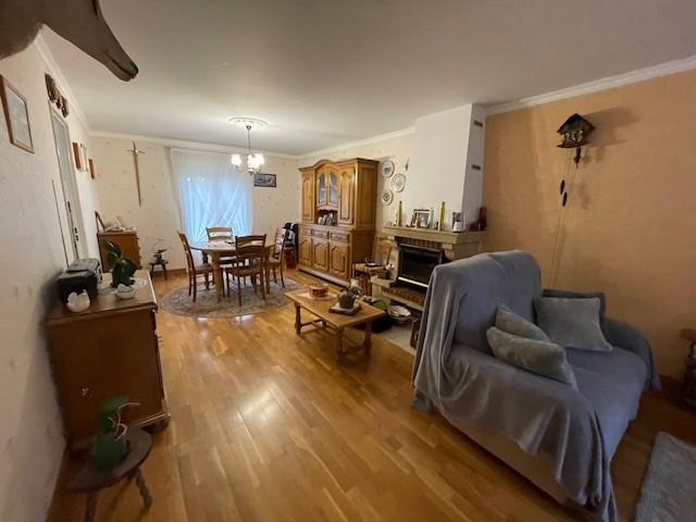 Au rez-de-chaussée : entrée, toilette, séjour salon avec cheminée insert, cuisine aménagée, garage (avec accès cave en sous-sol).