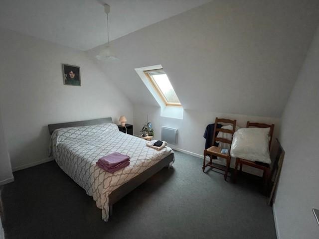 A l'étage : palier, 3 chambres avec placards, bureau et salle de bains (meuble vasque/baignoire et WC sanibroyeur)