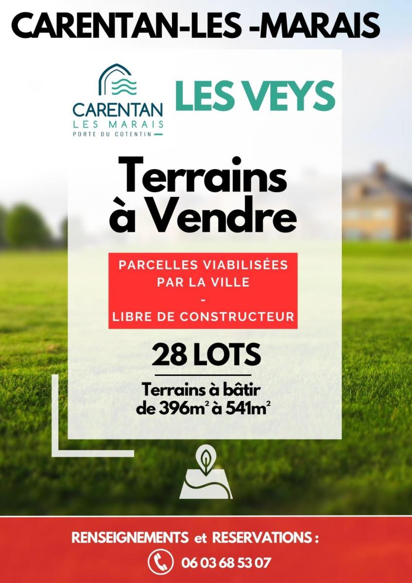 LES VEYS, lotissement La Blanche 28 terrains à bâtir viabilisés, de 396 m² à 541 m² Libre choix du constructeur  Bénéficiez des nouvelles mesures du prêt à taux zéro !!