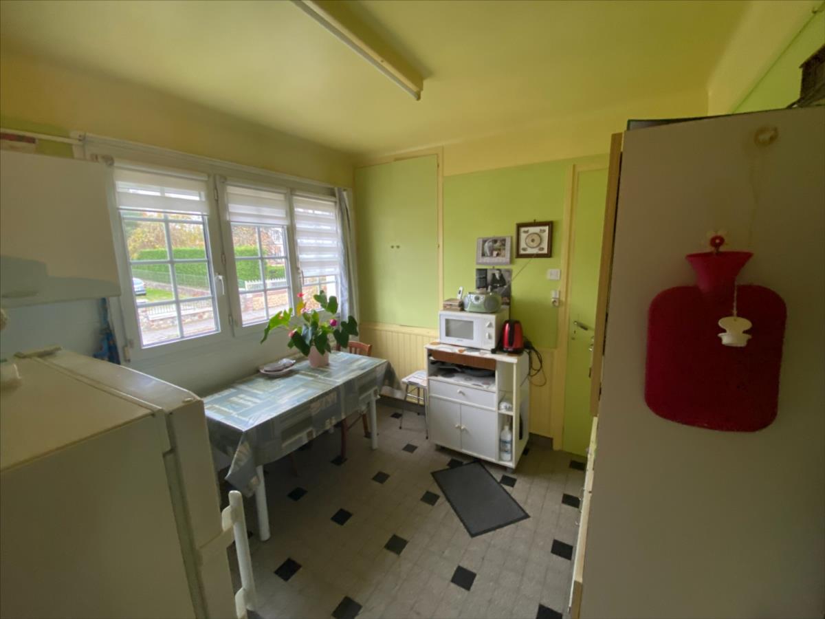Un rez-de-chaussée avec entrée, salon, cuisine, deux chambres, salle d’eau, WC et bureau.
