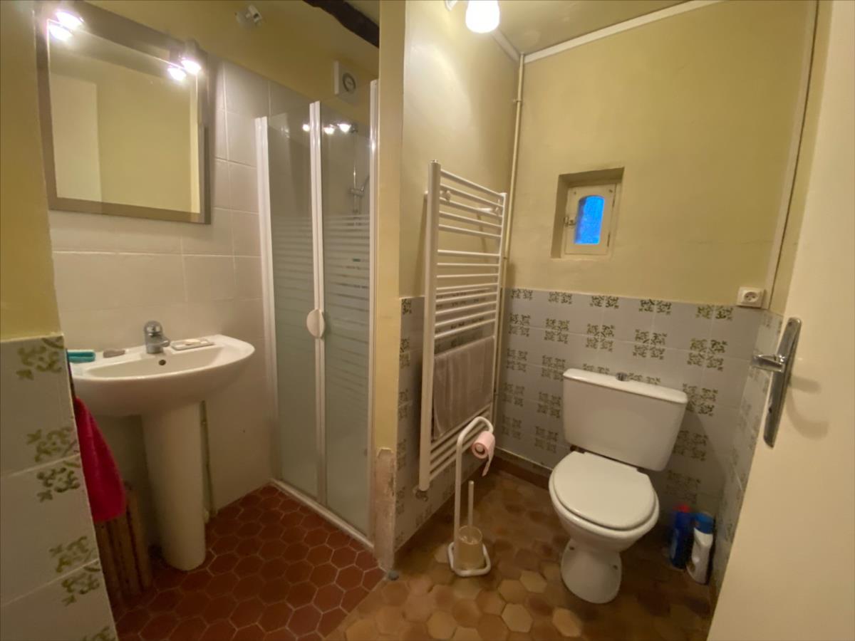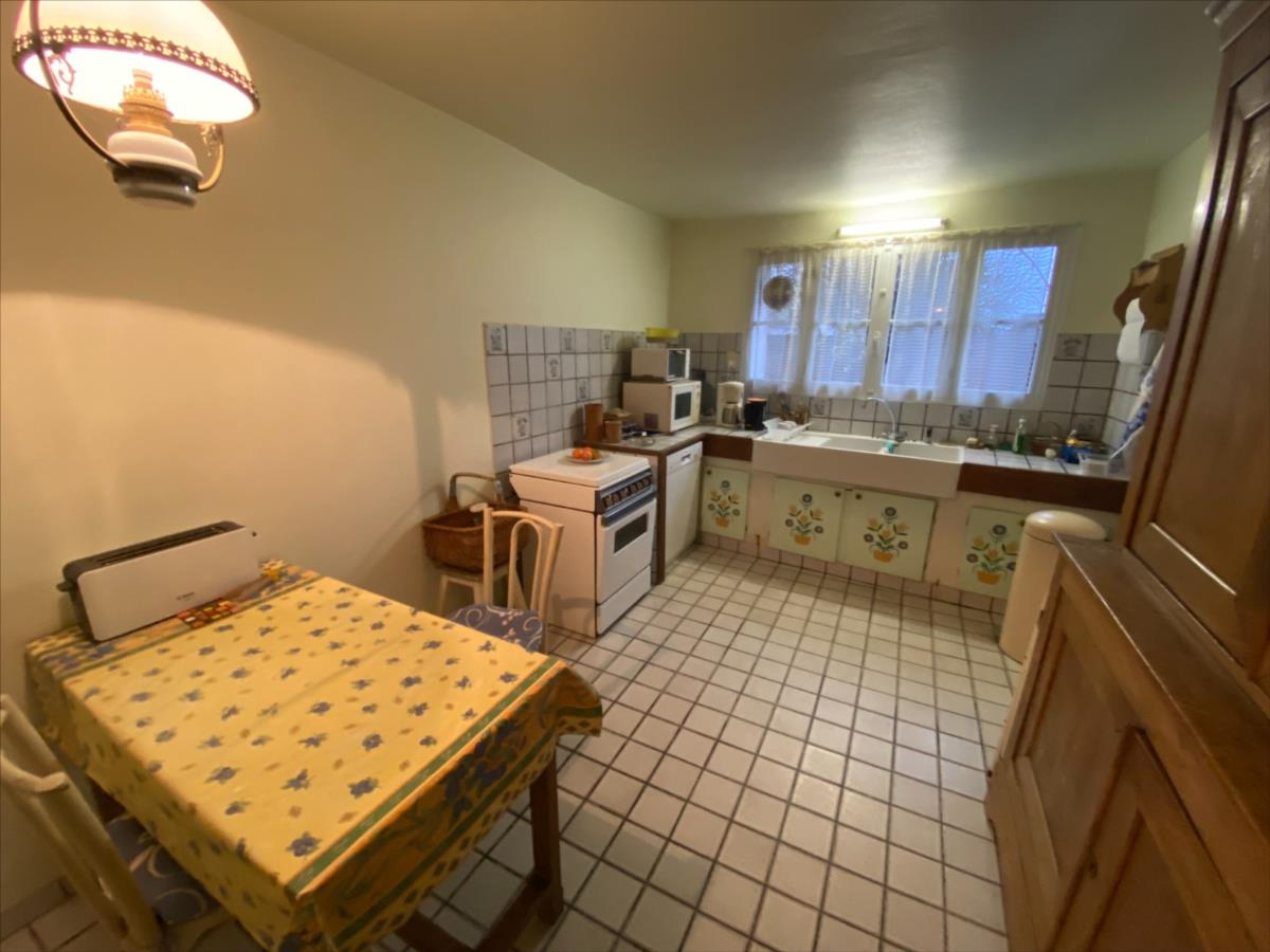 - Au rez-de-chaussée : une entrée, une salle d’eau avec WC, un bûcher, une pièce de stockage, une cuisine, un double séjour, quatre chambres, une salle de bains avec WC, un atelier et un cellier.