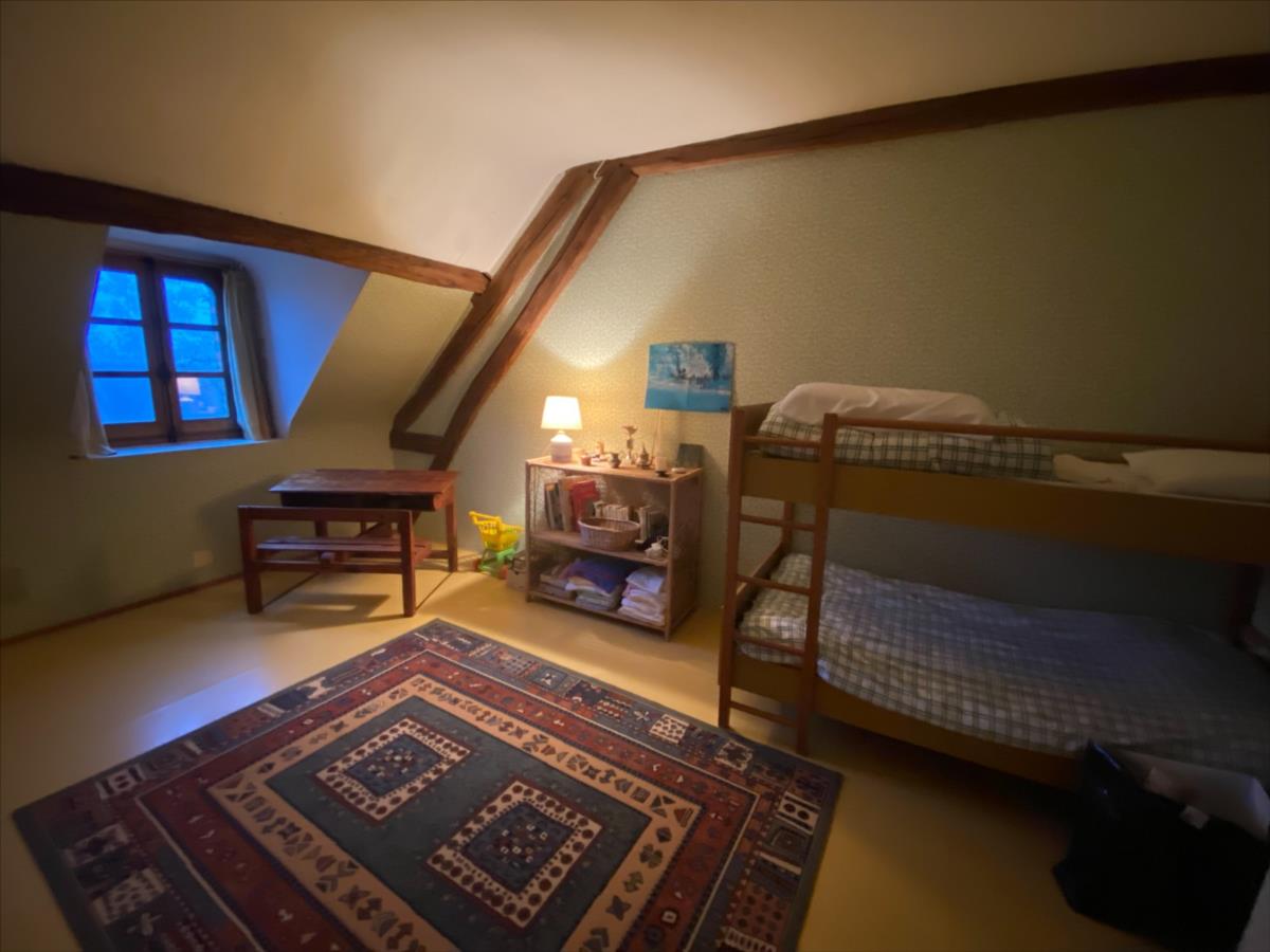 - À l’étage : un couloir desservant quatre chambres supplémentaires, une salle de bains, un WC, deux greniers aménageables.