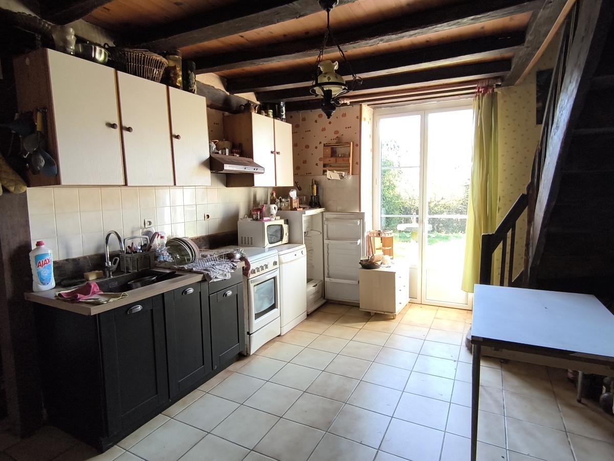 En campagne, longère en pierres d'env. 100 m² au sol avec grange attenante d'env. 80 m² au sol; sur 1.900 m² de terrain. La maison est composée au rez-de-chaussée d'un séjour avec cheminée, une cuisine ouverte, une chambre, salle d'eau, wc, chaufferie et 2 caves. Au 1er étage : une chambre et un grenier; 2nd grenier accessible par la cave. En dépendance attenante : une grange et une pièce à feu, avec grenier au dessus. En dépendances : un garage ouvert, un ancien fournil, remises à usage de chenil et poulailler. L'ensemble sur 1.900 m² de terrain. Chauffage central fioul. Classe énergie F.