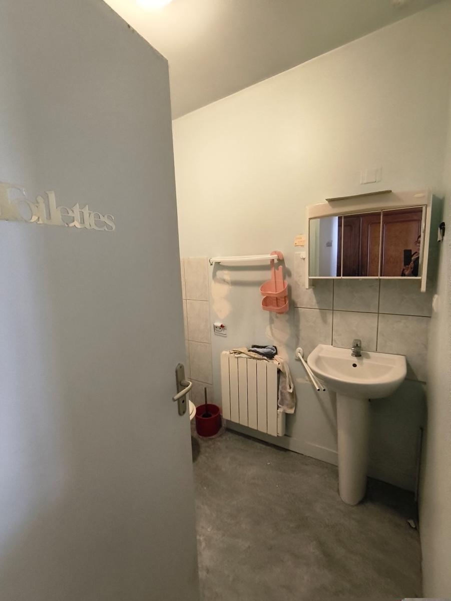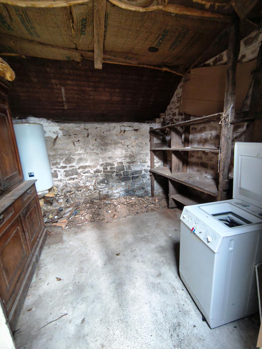 Maison de ville de 2 pièces principales avec garage sur 345 m² de jardin. Le rez-de-chaussée est composé d'une entrée, un séjour-cuisine, une chambre, une salle d'eau avec wc, une buanderie-cave. Grenier au-dessus accessible par l'extérieur. Garage en côté. Jardin. L'ensemble sur 345 m². Convecteurs électriques. DPE : G.